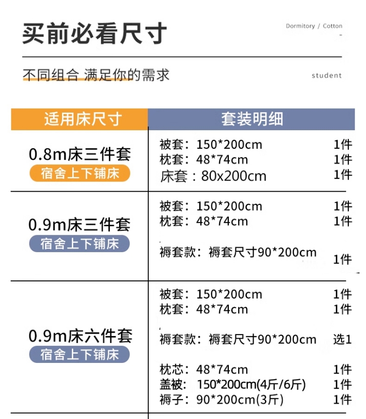 0.9米床套款-六件套(含6斤被芯) | ¥221.00 |
