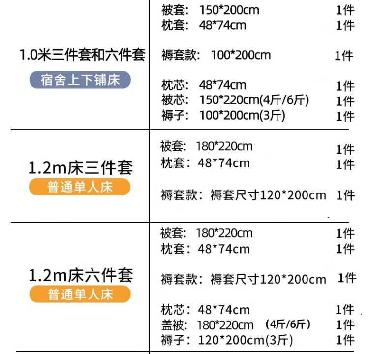 1.0米床套款-六件套(含4斤被芯) | ¥224.00 |