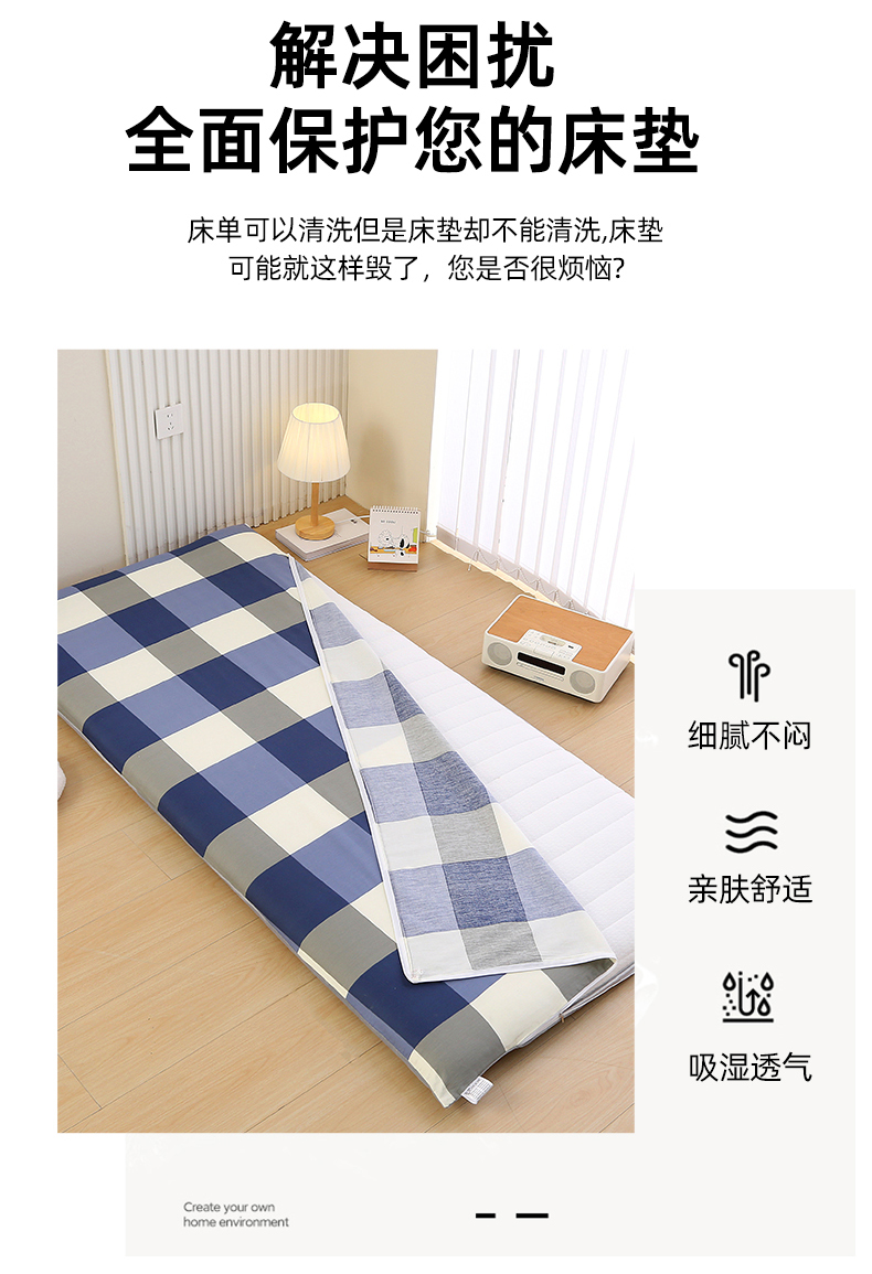 当前位置: 91家纺网 > 商品网购 > 床上用品 > 床垫套 > 凯森家纺 2025新款13372全棉床垫套学生床笠套单品褥子套懒人垫子套90x190学生上下铺宿舍寝室 留白