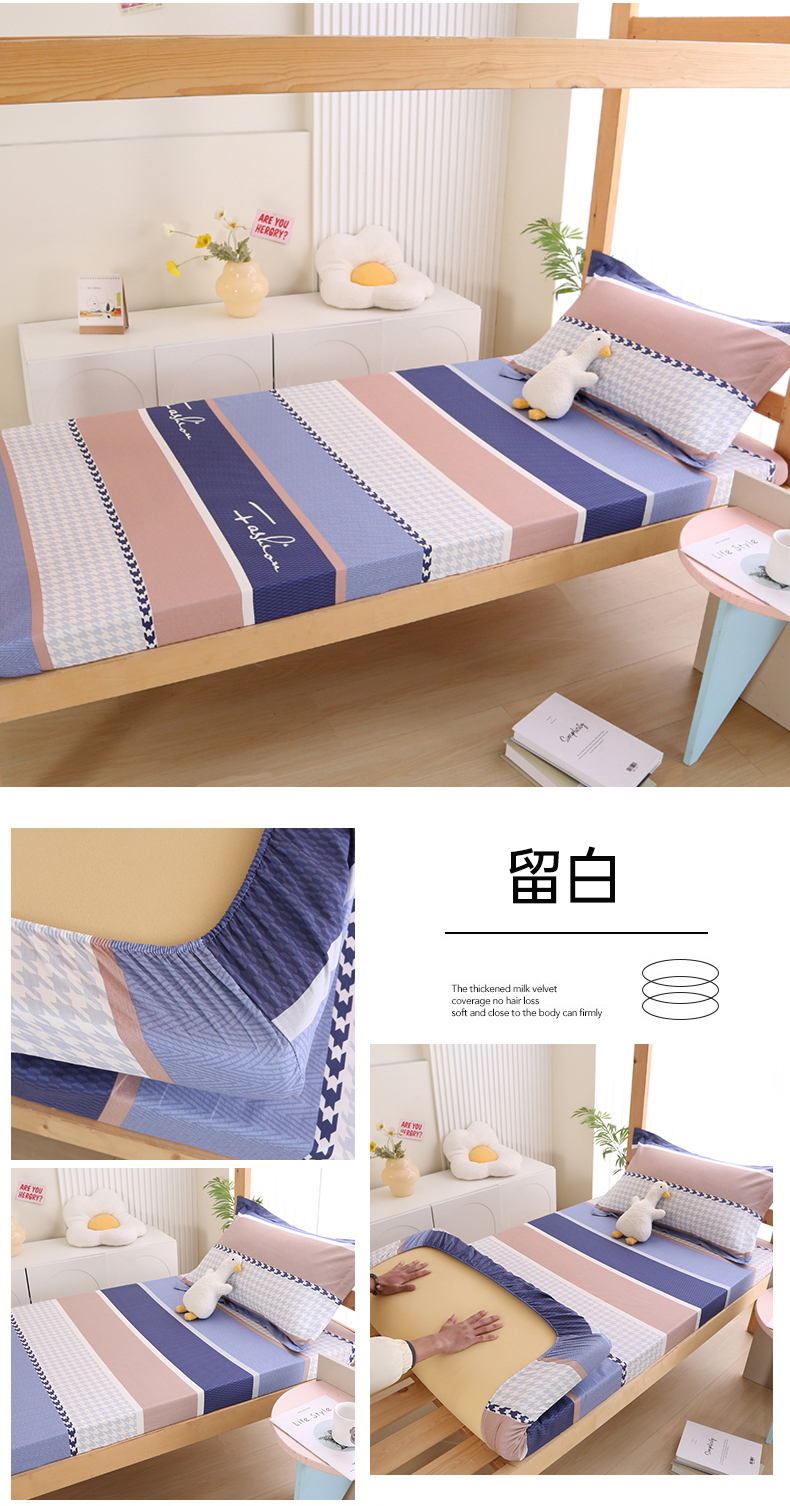• 91家纺网 家纺一手货源 找家纺 凯森家纺 2024新款13372全棉印花学生床笠宿舍寝室床垫保护套上下铺床笠90x190 卡乐-蓝
