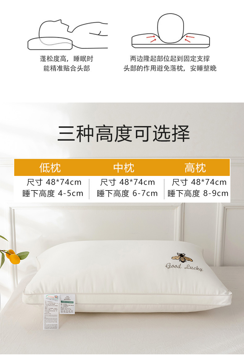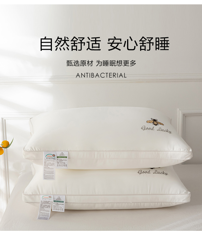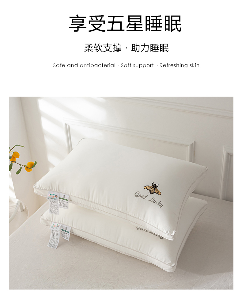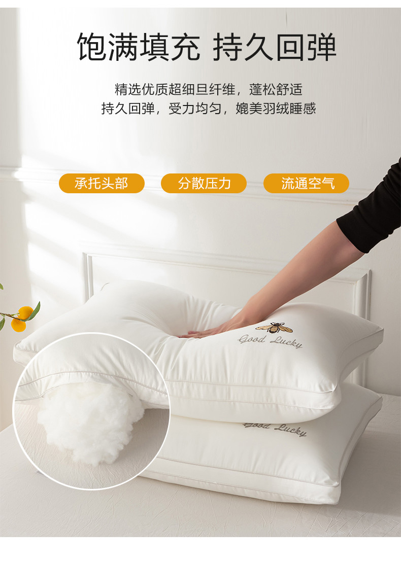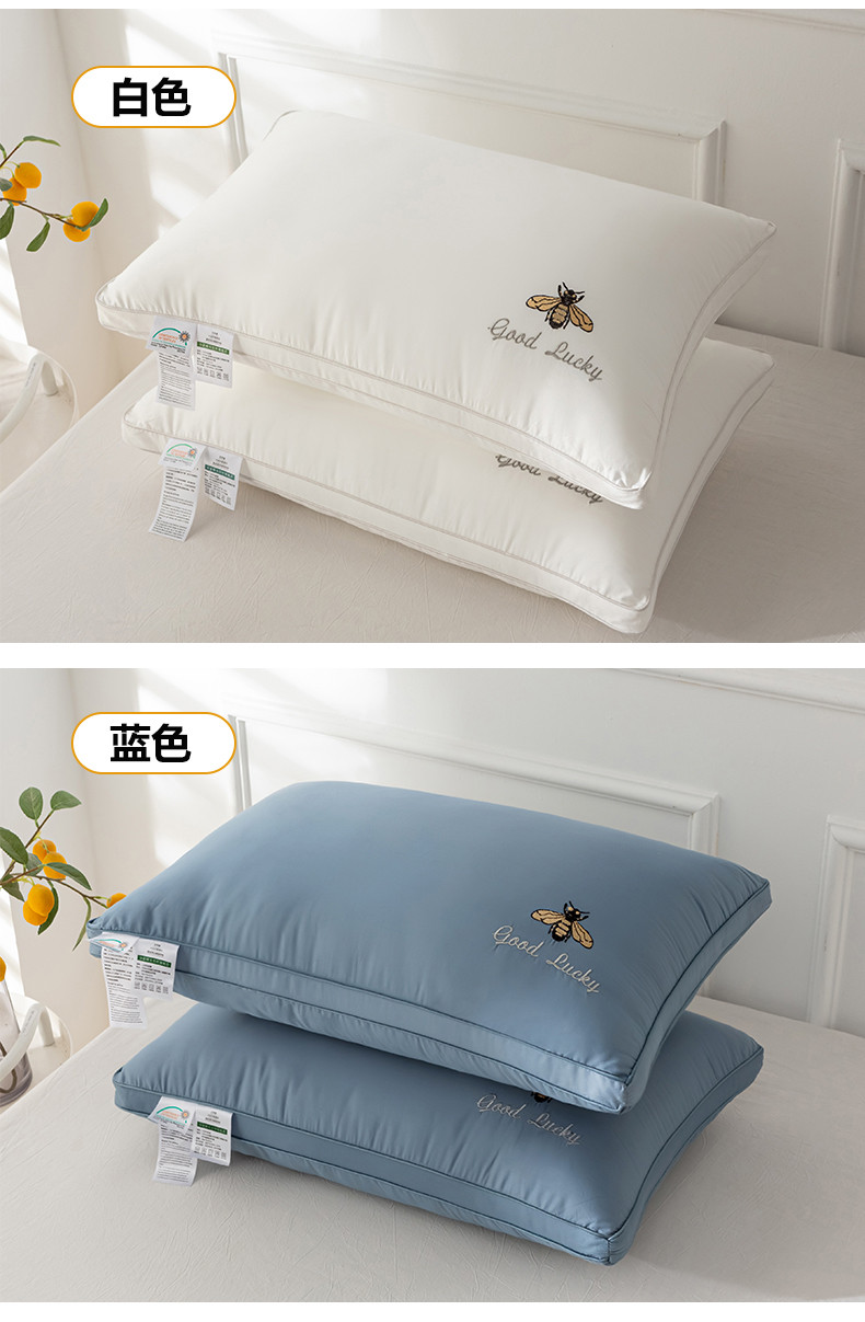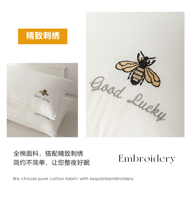 商品名称:(总)2025新款全棉斜纹刺绣小蜜蜂枕头枕芯超细羽丝绒