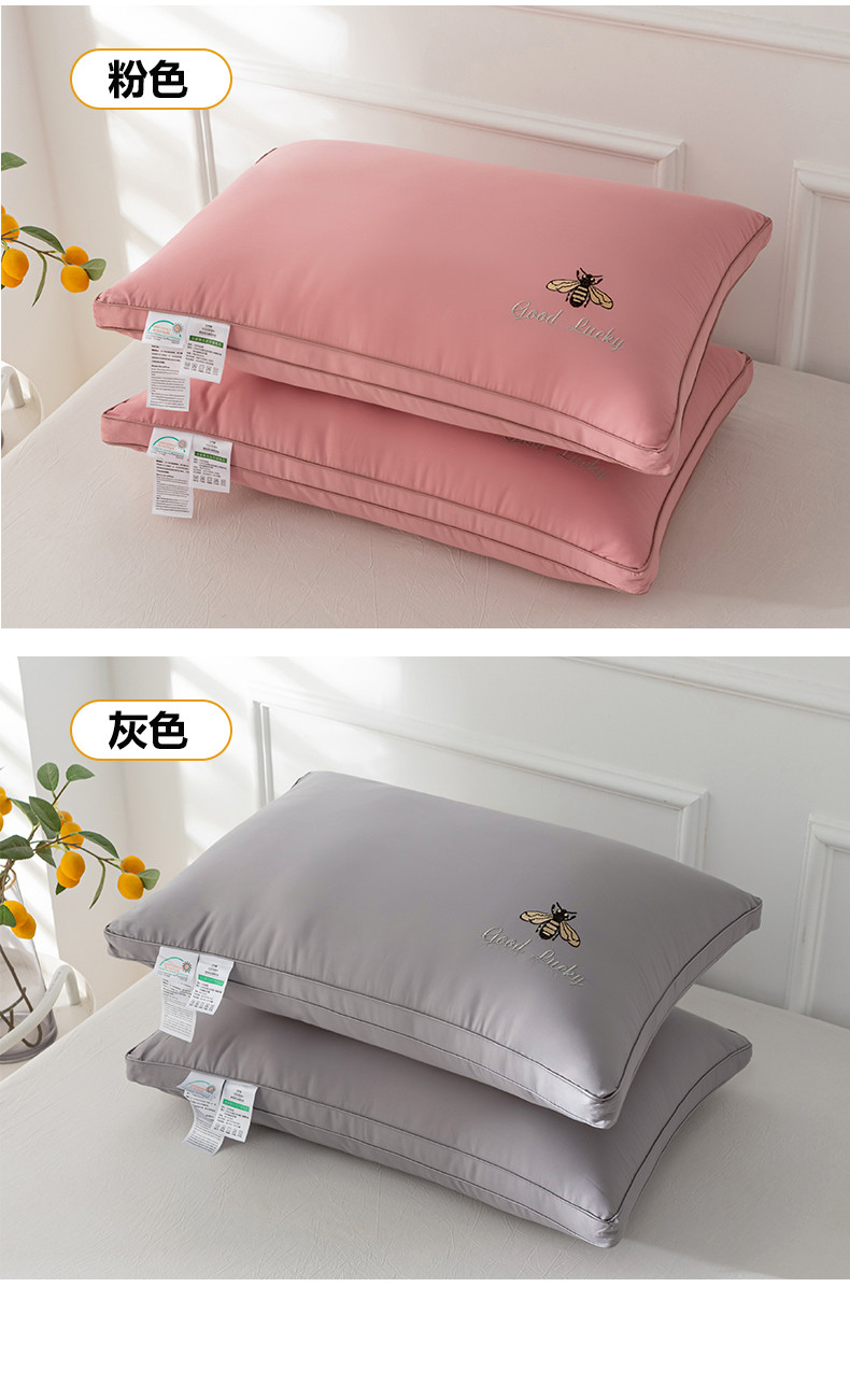 (总)2025新款全棉斜纹刺绣小蜜蜂枕头枕芯超细羽丝绒
