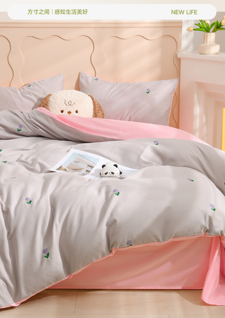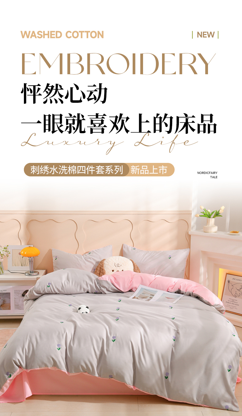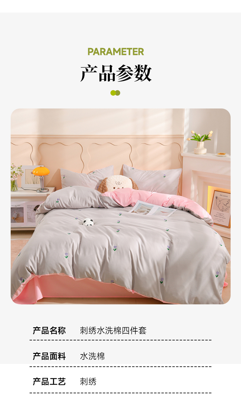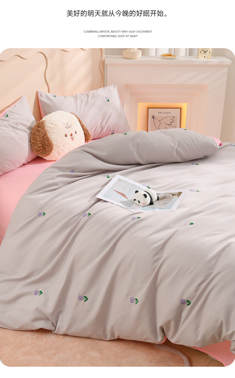 当前位置: 91家纺网 > 商品网购 > 床品套件 > 四件套 > 水洗棉四件套 > 推推家纺 2025新款刺绣水洗棉小清新四件套 郁金香-浅灰+浅玉
