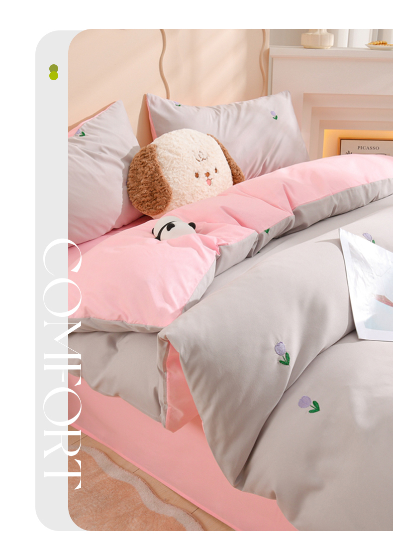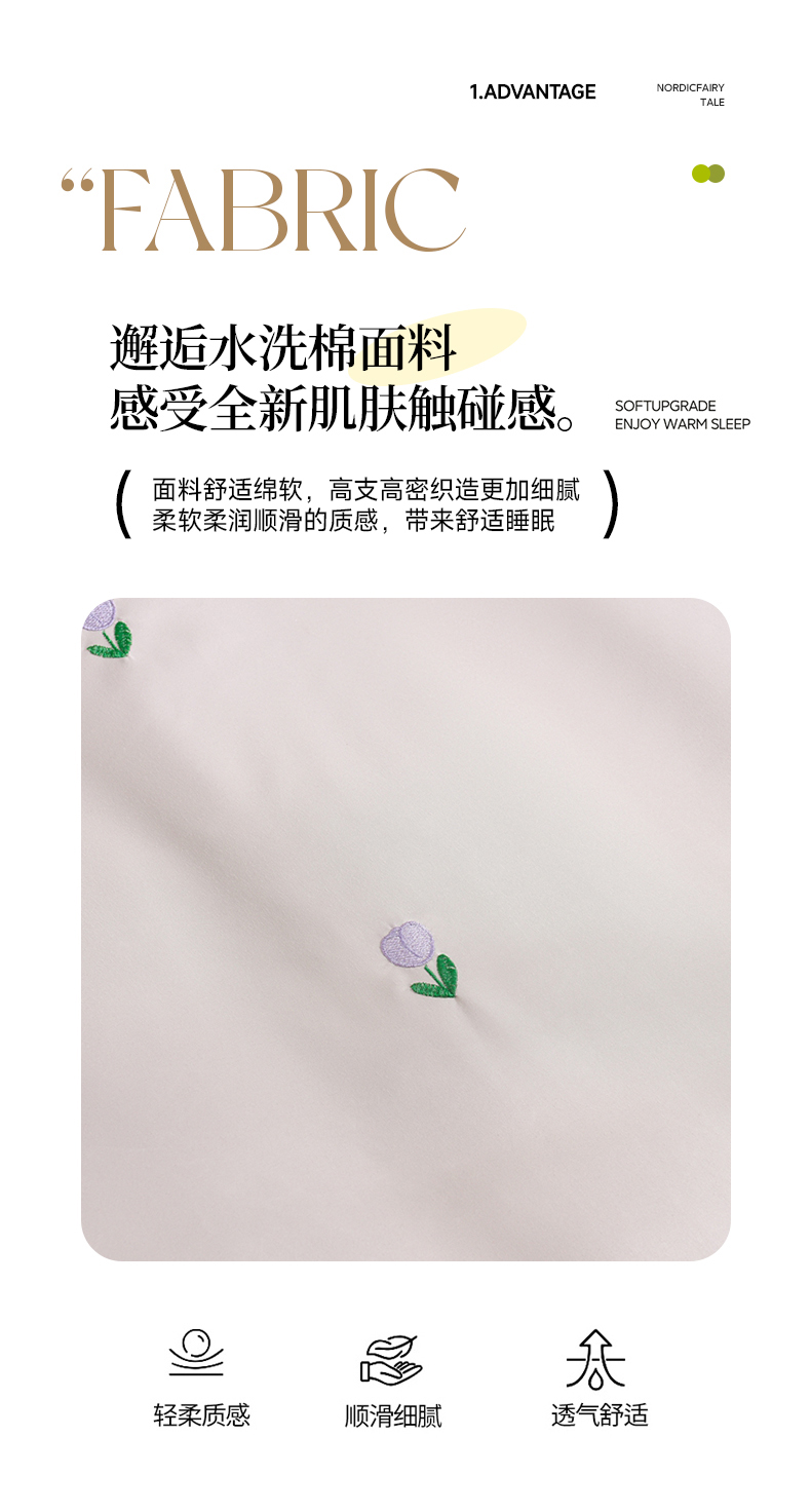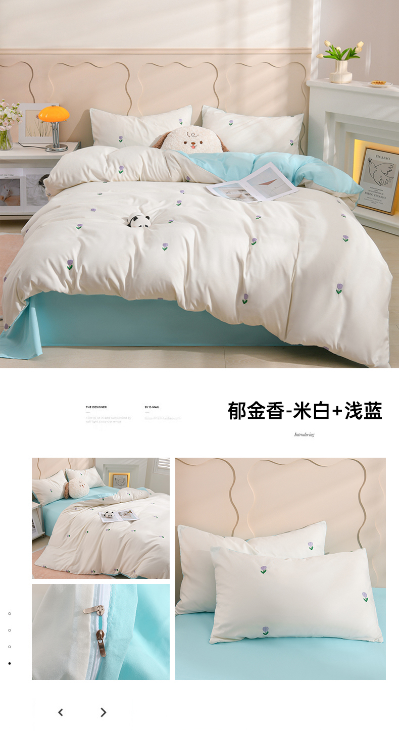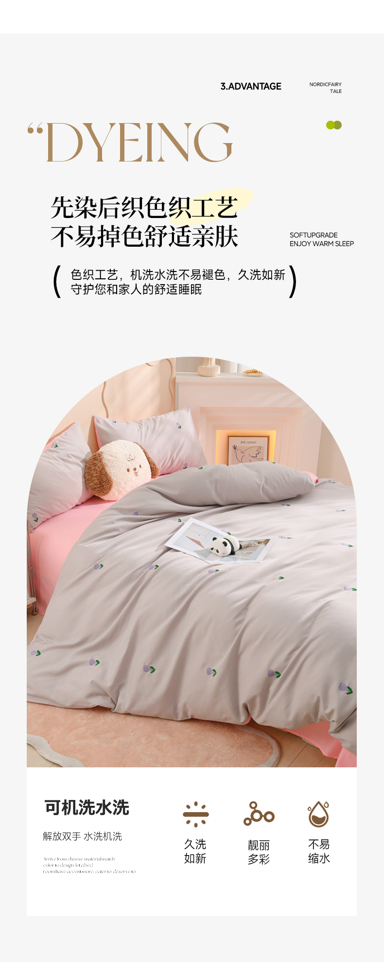 当前位置: 91家纺网 > 商品网购 > 床品套件 > 四件套 > 水洗棉四件套 > 推推家纺 2025新款刺绣水洗棉小清新四件套 郁金香-浅灰+浅玉