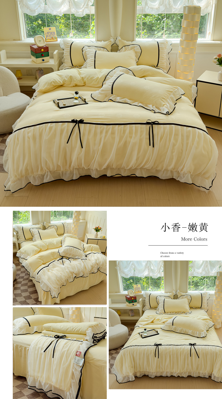 商品名称:漫布云2025春夏韩版公主风小香风公主风水洗棉工艺款四件套法式蕾丝花边床裙款四件套 小香—嫩黄