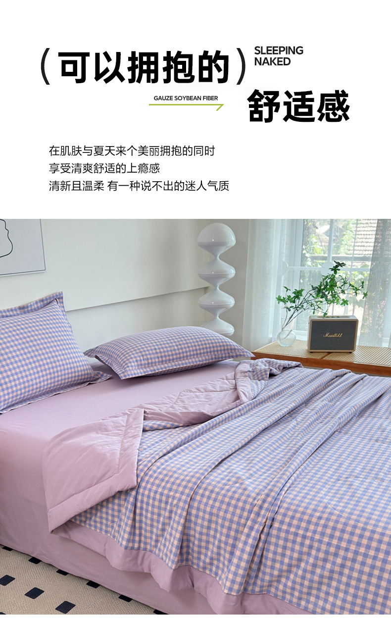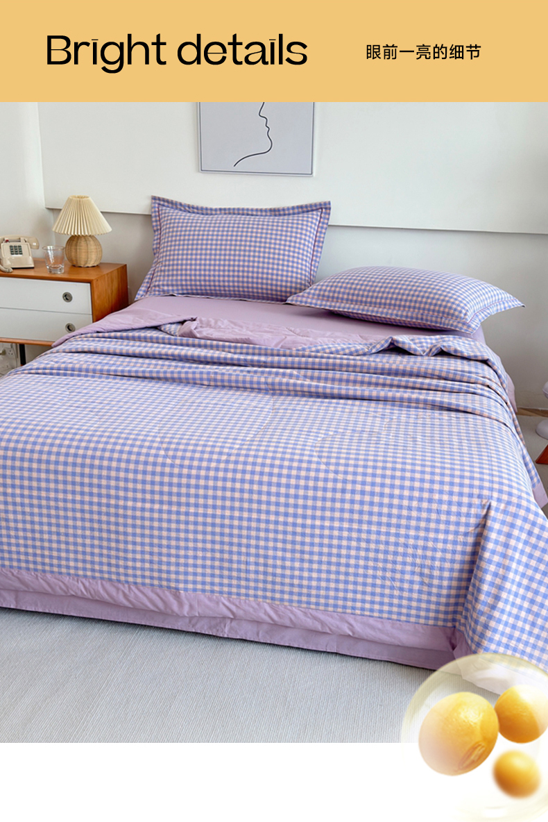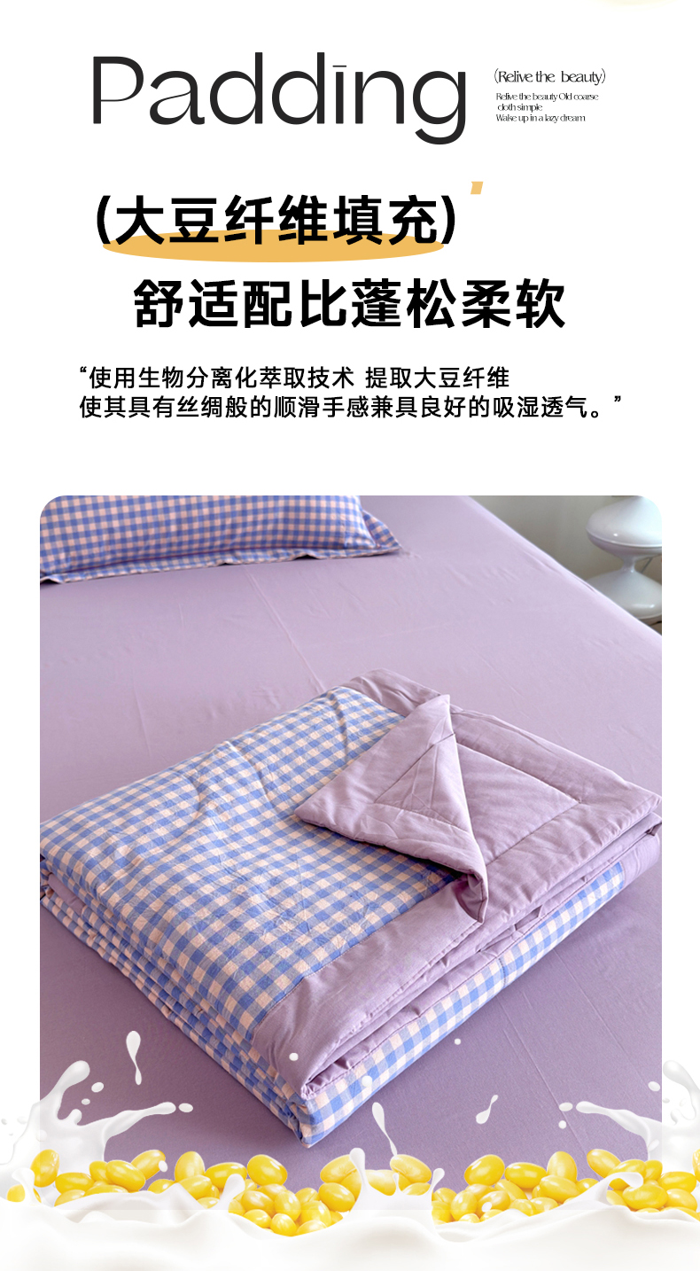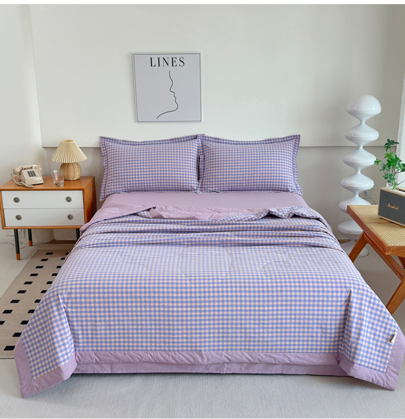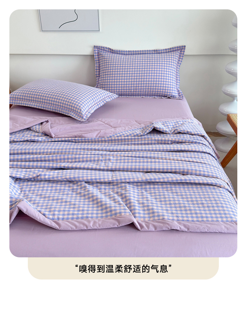 • 91家纺网 家纺一手货源 找家纺 价格下调三沁2025最新A类大豆纤维全棉色织水洗棉夏被四件套夏凉被空调被子无印良品 香芋紫小格