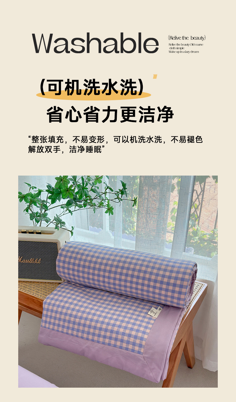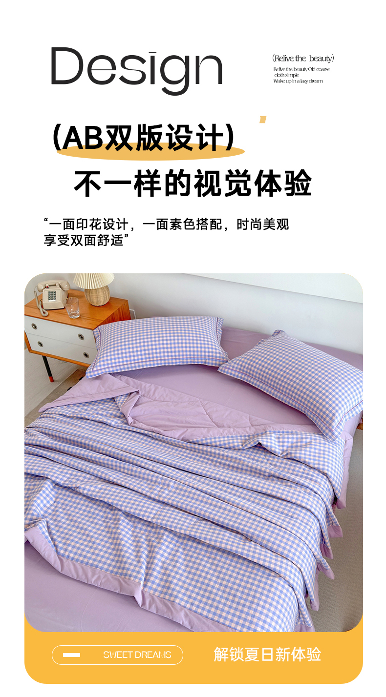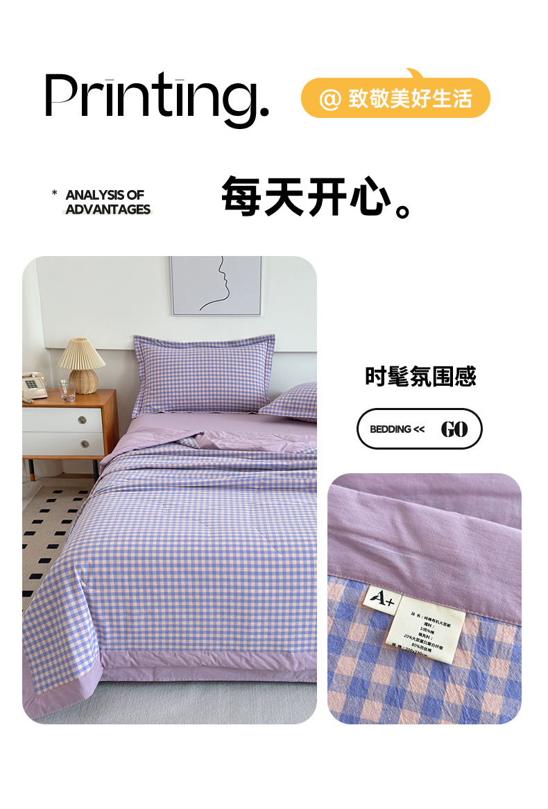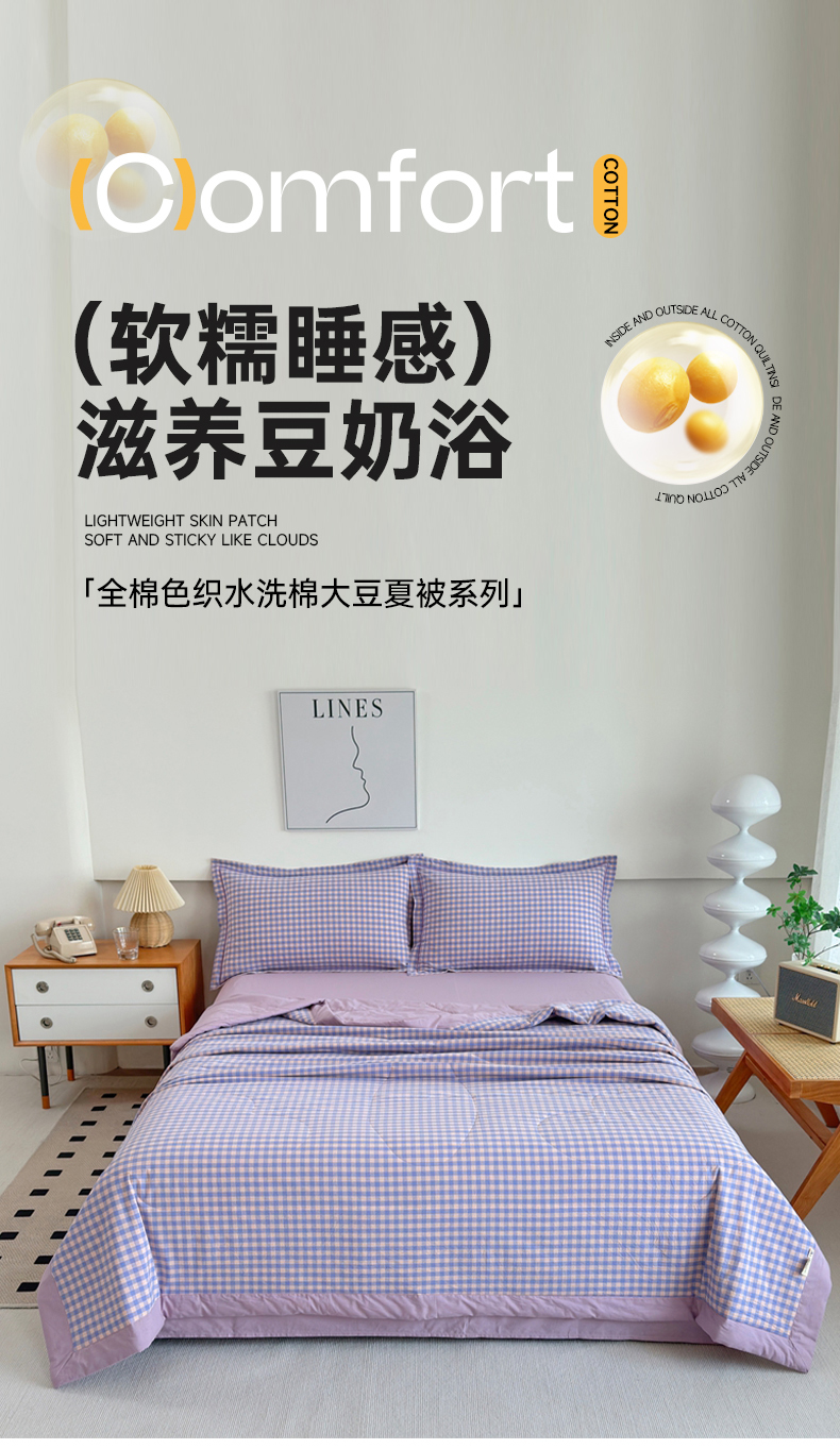 • 91家纺网 家纺一手货源 找家纺 价格下调三沁2025最新A类大豆纤维全棉色织水洗棉夏被四件套夏凉被空调被子无印良品 香芋紫小格