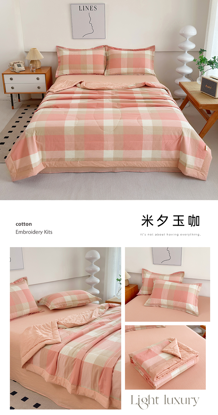 • 91家纺网 家纺一手货源 找家纺 (总)三沁2025新款全棉色织水洗棉夏被,彩虹大格,粉色恋人,爵士乐章,绿野仙踪大格,绿野仙踪小格,绿野仙踪中格,米夕玉咖,莫兰迪粉,秋荷粉,香芋紫小格