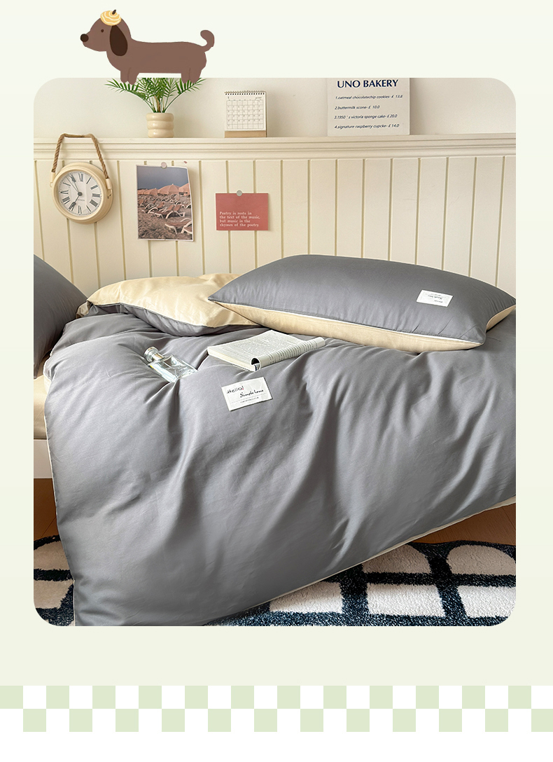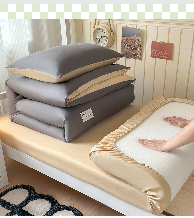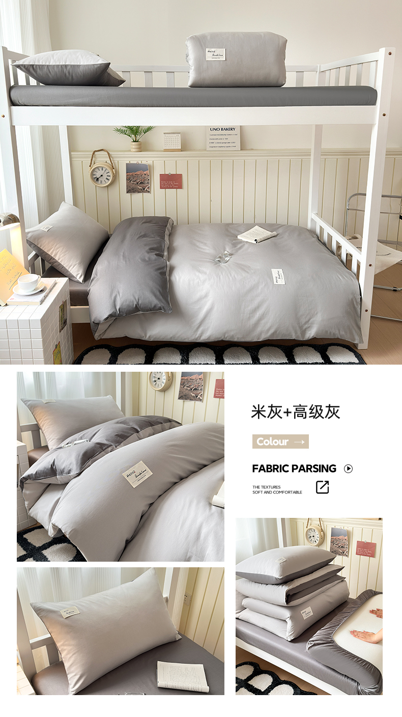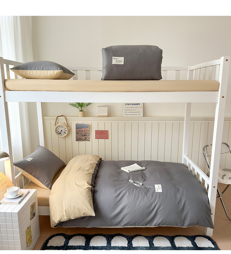 (总)曼之夏 2025新款全棉拼色纯色宿舍学生三件套,高级灰+浅驼,兰灰+浅驼,蓝格,米白+草绿,米白+浅驼,米灰+高级灰,浅绿+米灰,水兰+米灰,杏黄+草绿