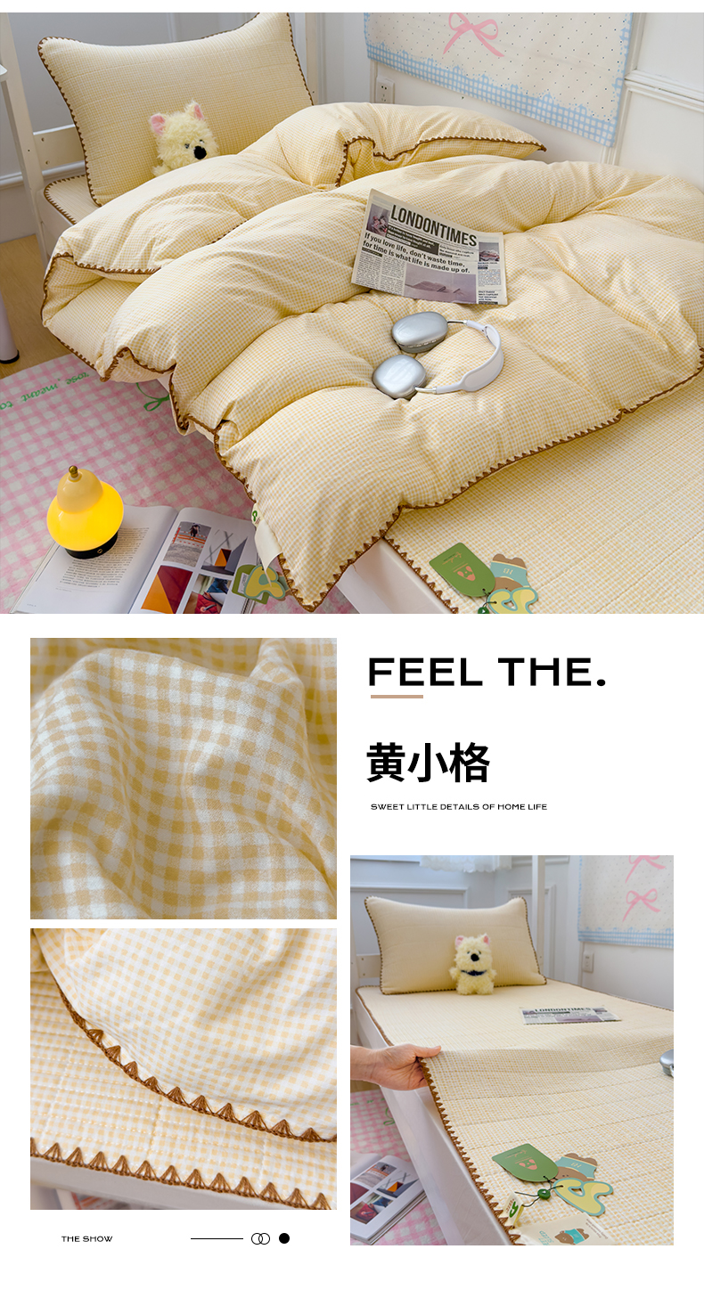 (总)赫梵茜 2025新款经典小格纹云朵棉格子款学生床盖单品床盖床盖单件三件套,组合图仅做展示,绿格,粉格,青绿,黄格,黑格,蓝格,紫格