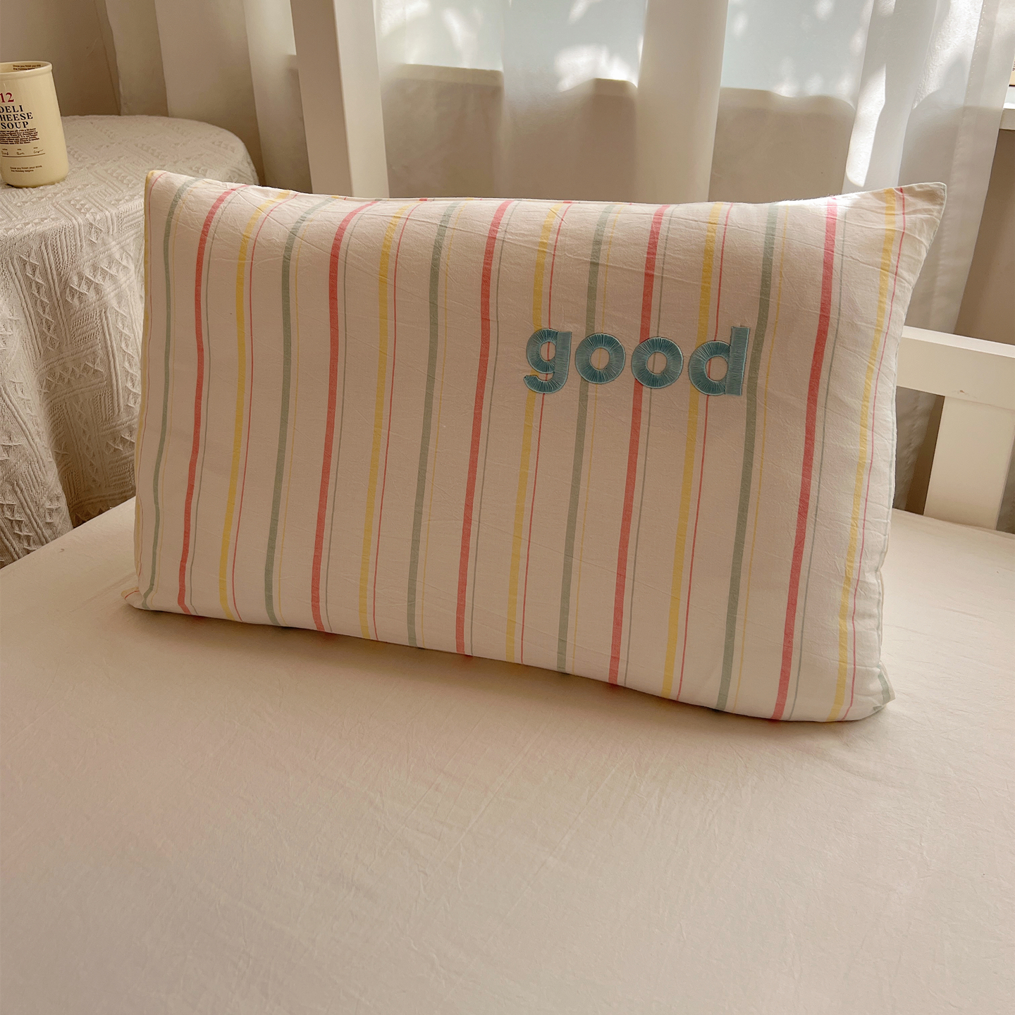 商品名称:丽涵家纺 2025新款全棉纯棉色织水洗棉刺绣婴幼儿童枕套枕套单件单枕套-儿童款 韵律-咖