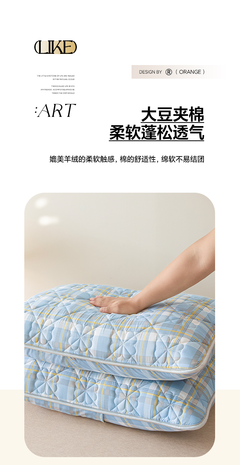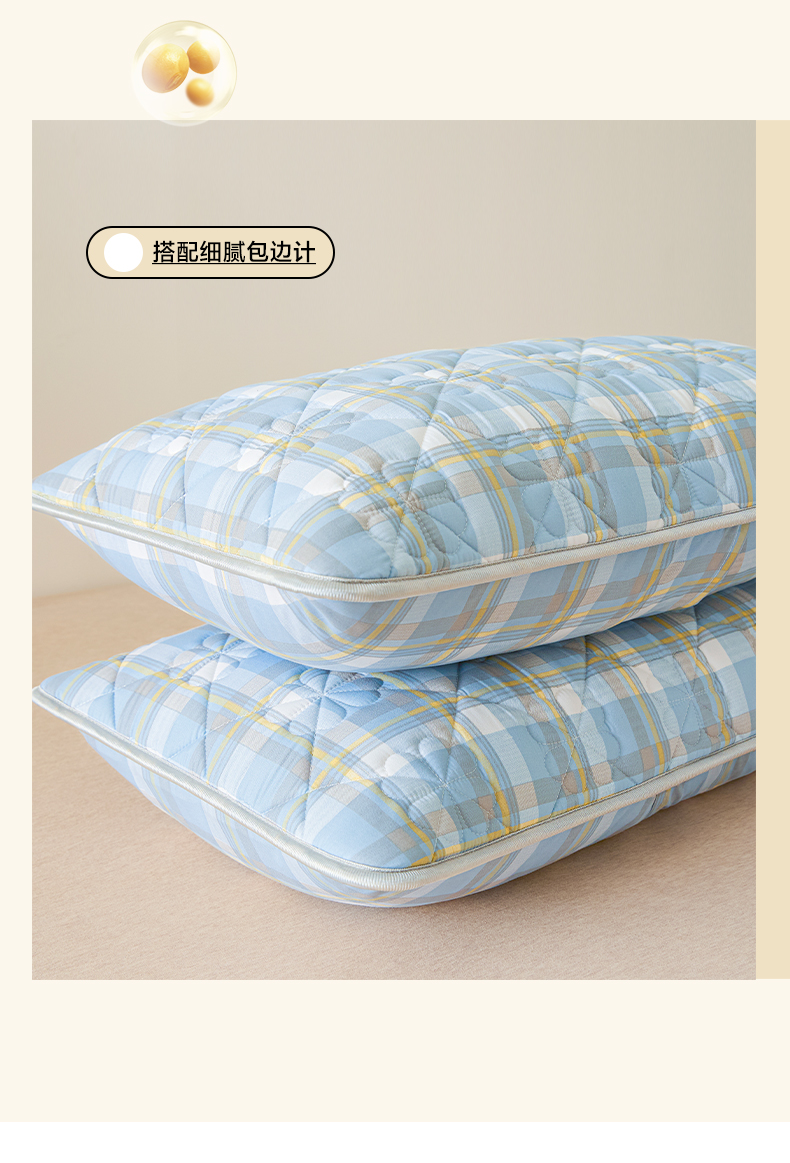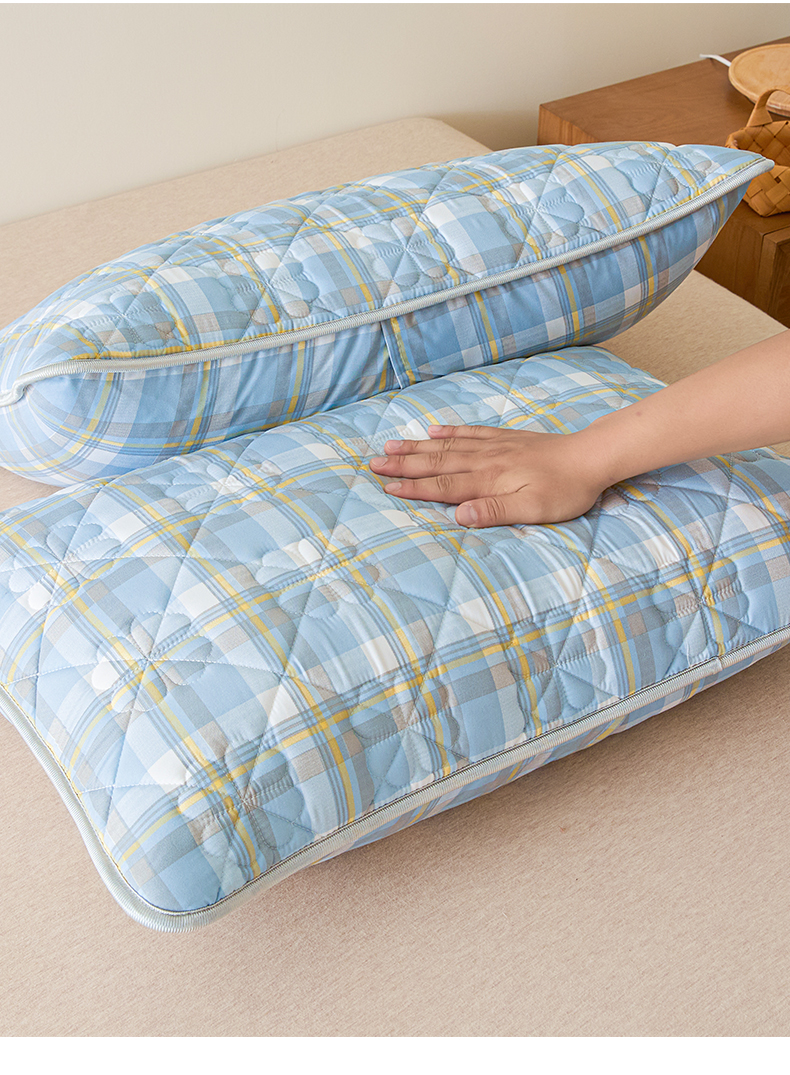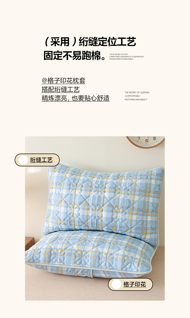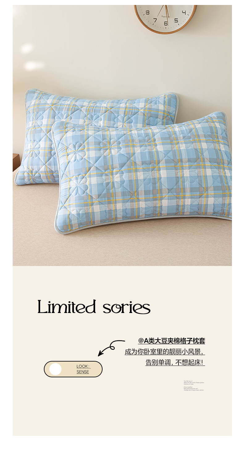 商品名称:芬晴家纺 2025新款A类大豆夹棉格子枕套单件单枕套防口水头油 简夕蓝
