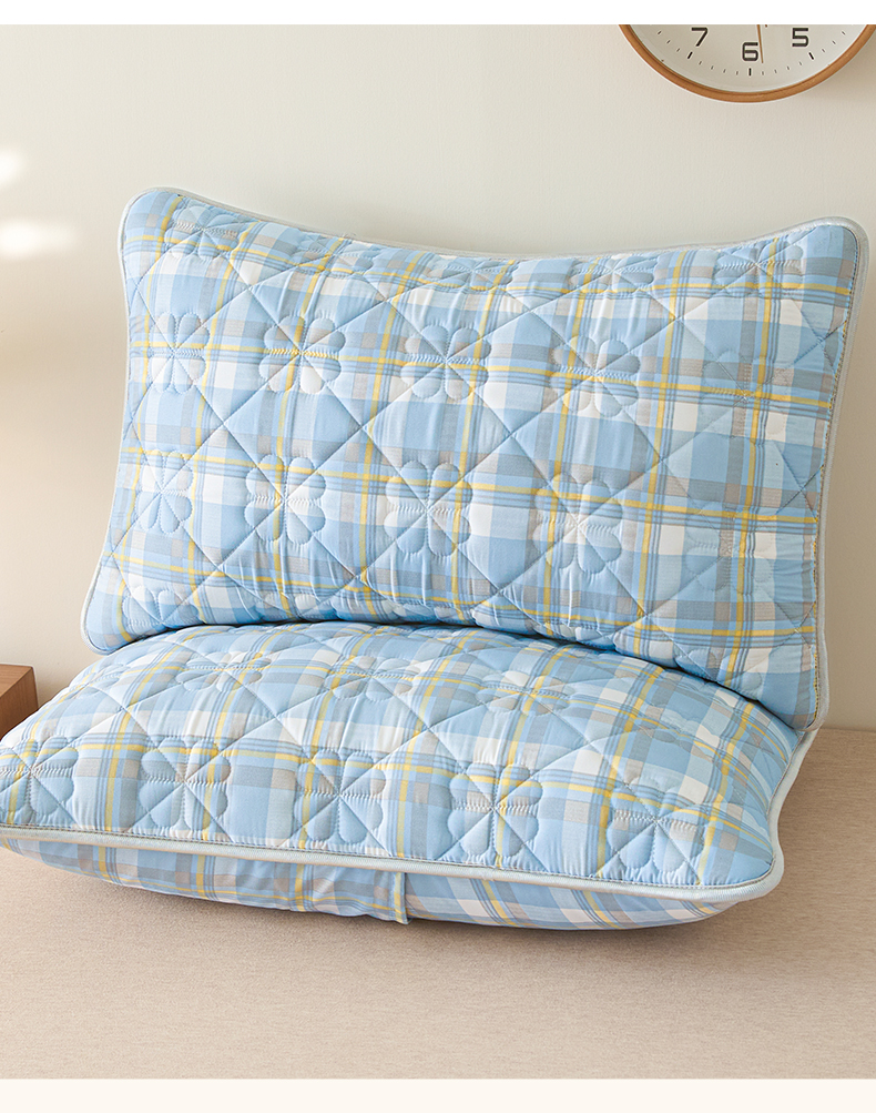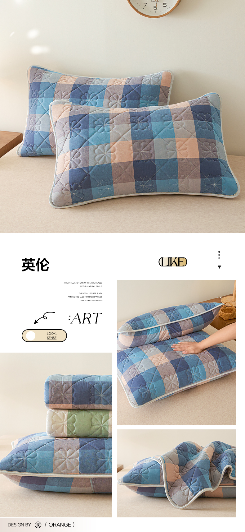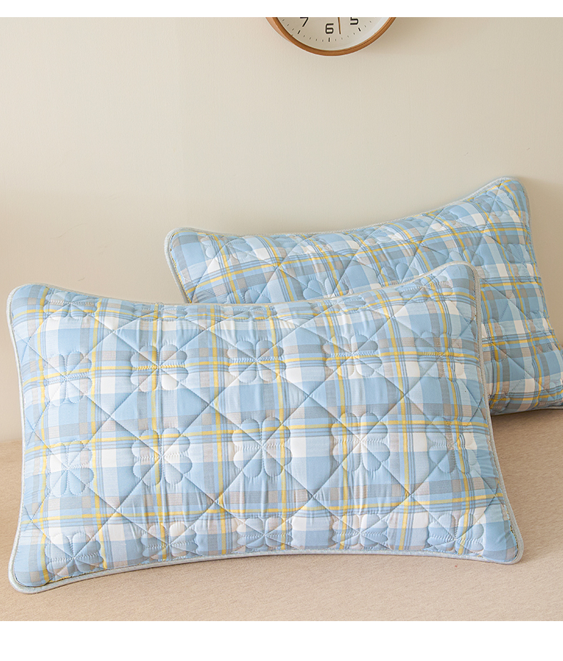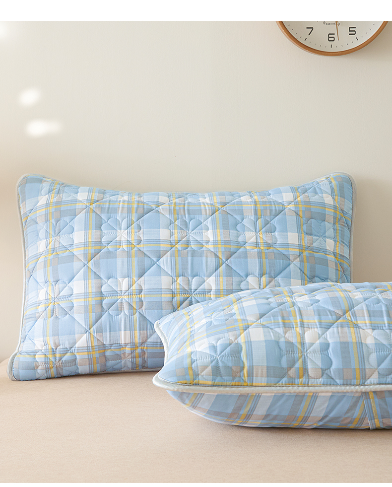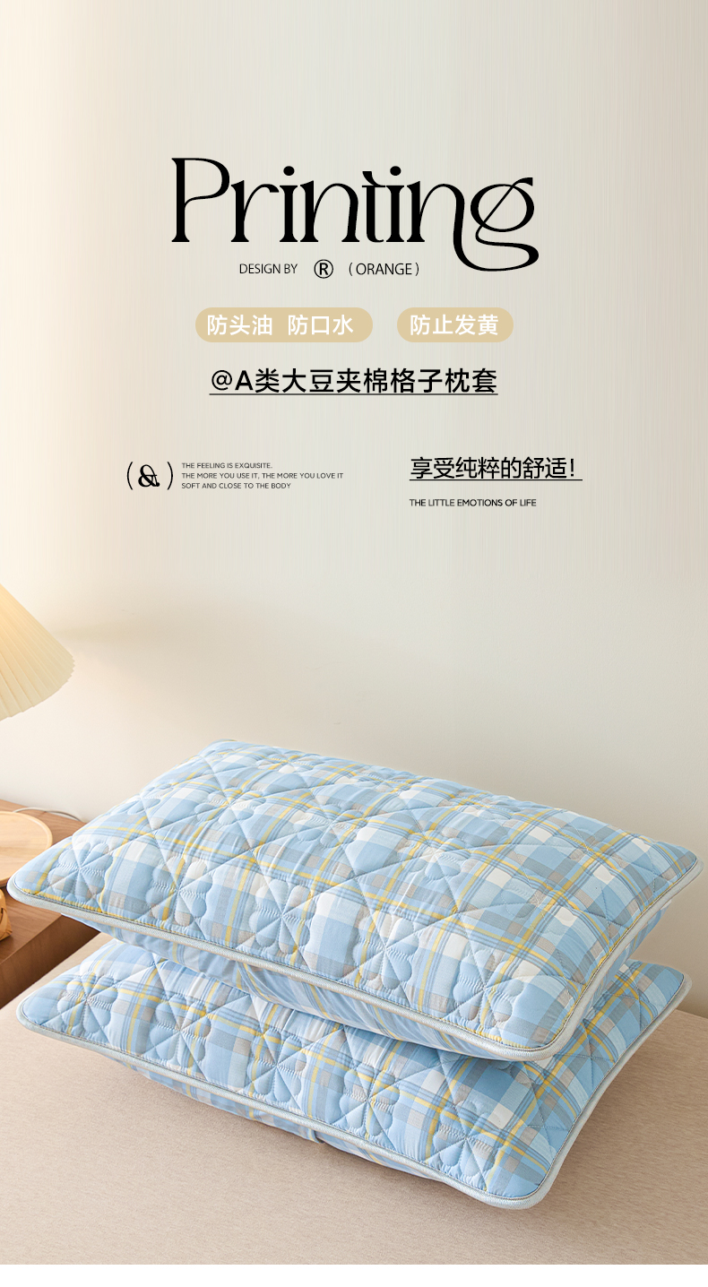 芬晴家纺 2025新款A类大豆夹棉格子枕套单件单枕套防口水头油 简夕蓝