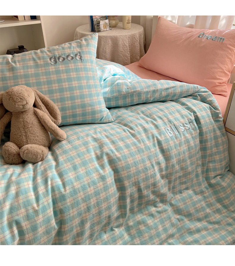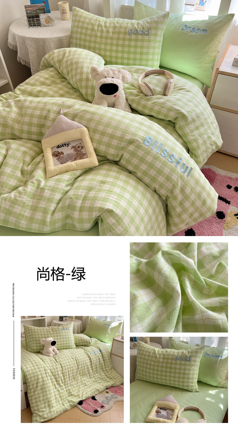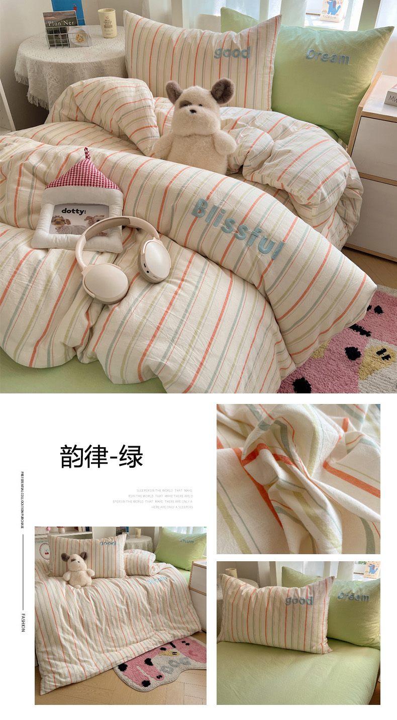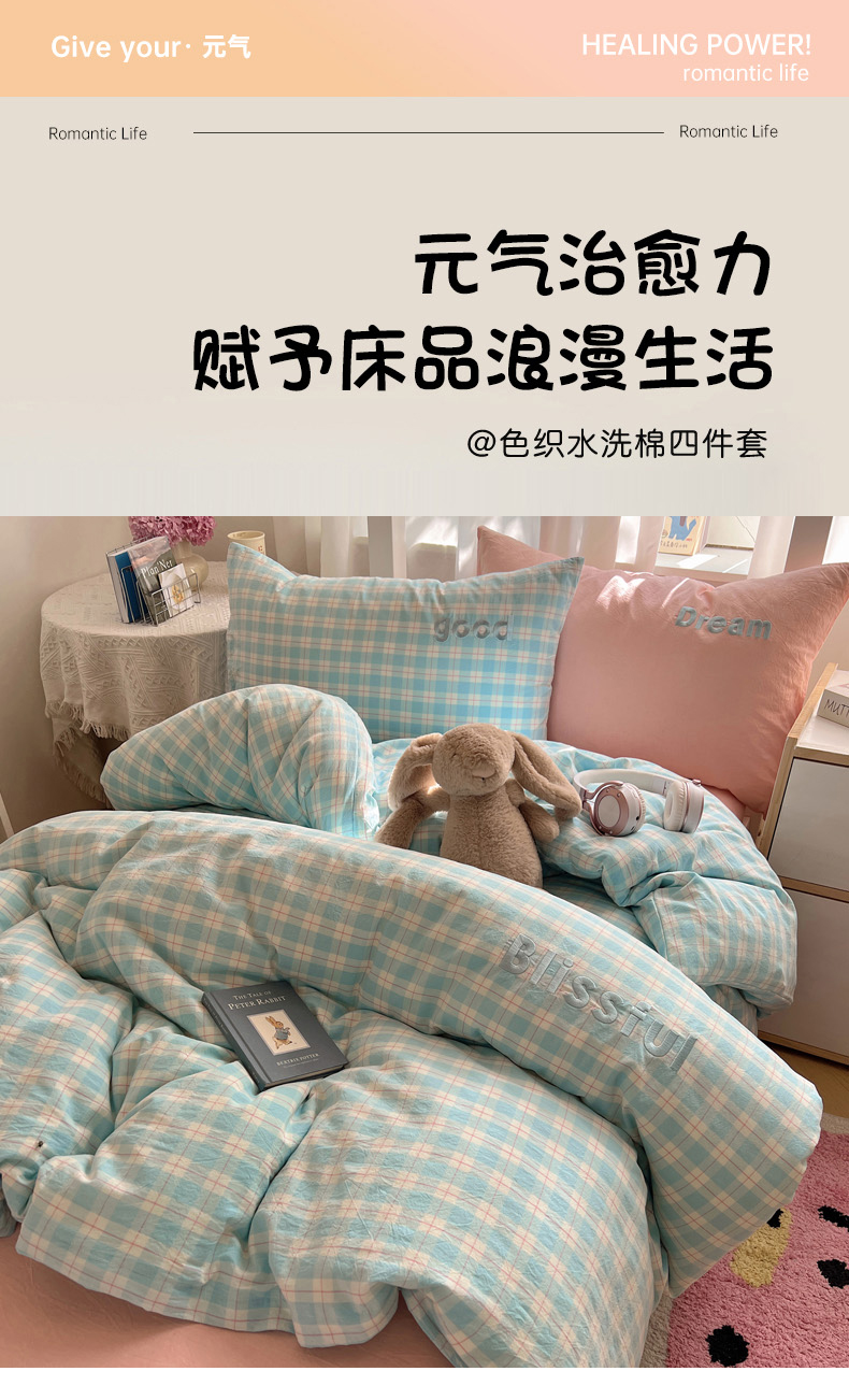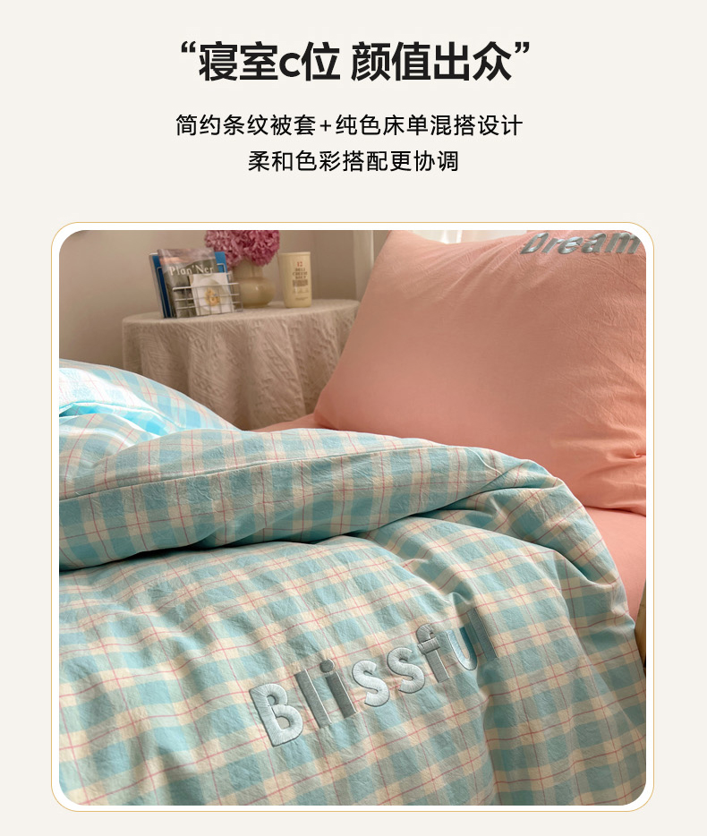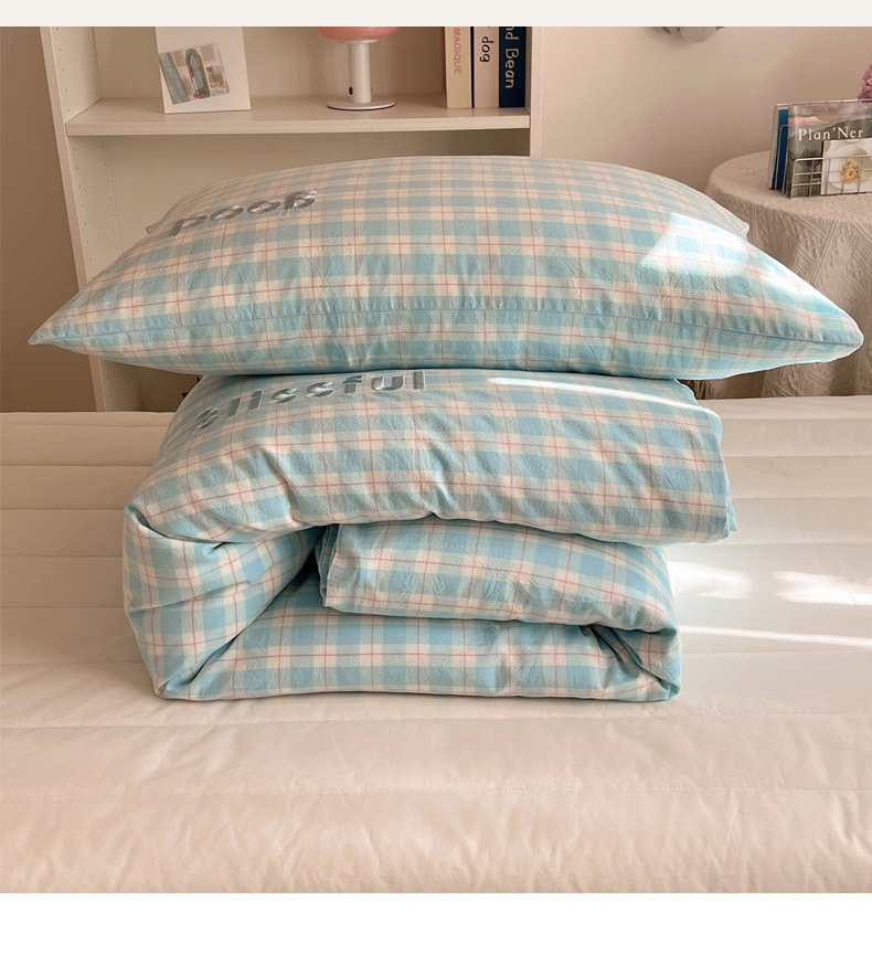 当前位置: 91家纺网 > 商品网购 > 床品套件 > 四件套 > 水洗棉四件套 > 丽涵家纺 2025新款全棉纯棉色织水洗棉刺绣三件套四件套 尚格-蓝