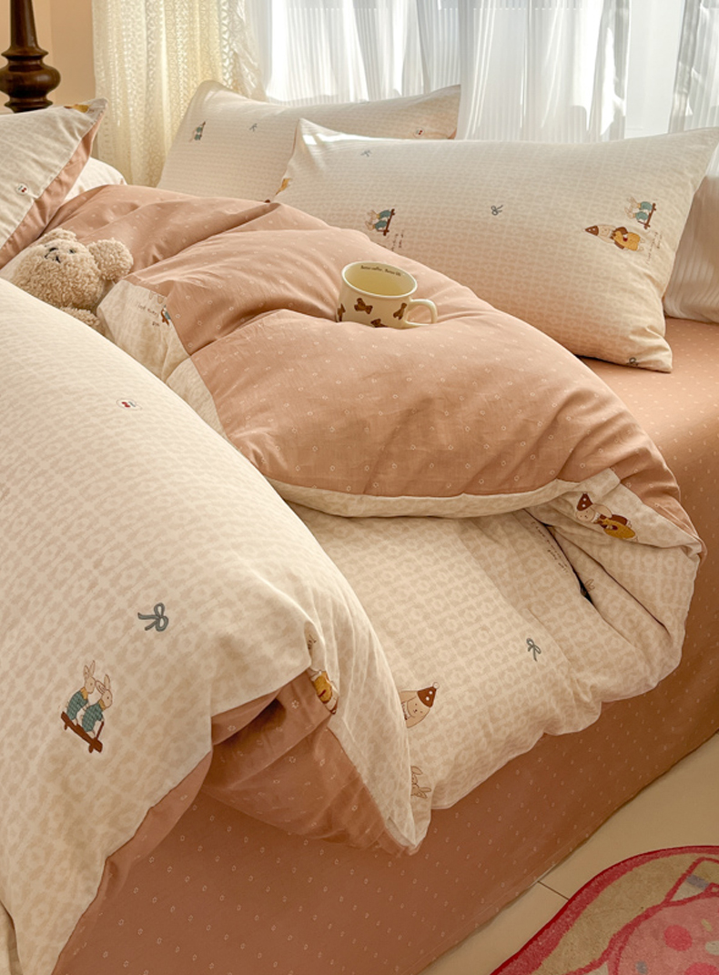 当前位置: 91家纺网 > 商品网购 > 床品套件 > 四件套 > 全棉普通四件套 > 麦伦家居 2025春夏新款全棉纯棉斜纹40s13372系列-小清新卡通 兔梦园