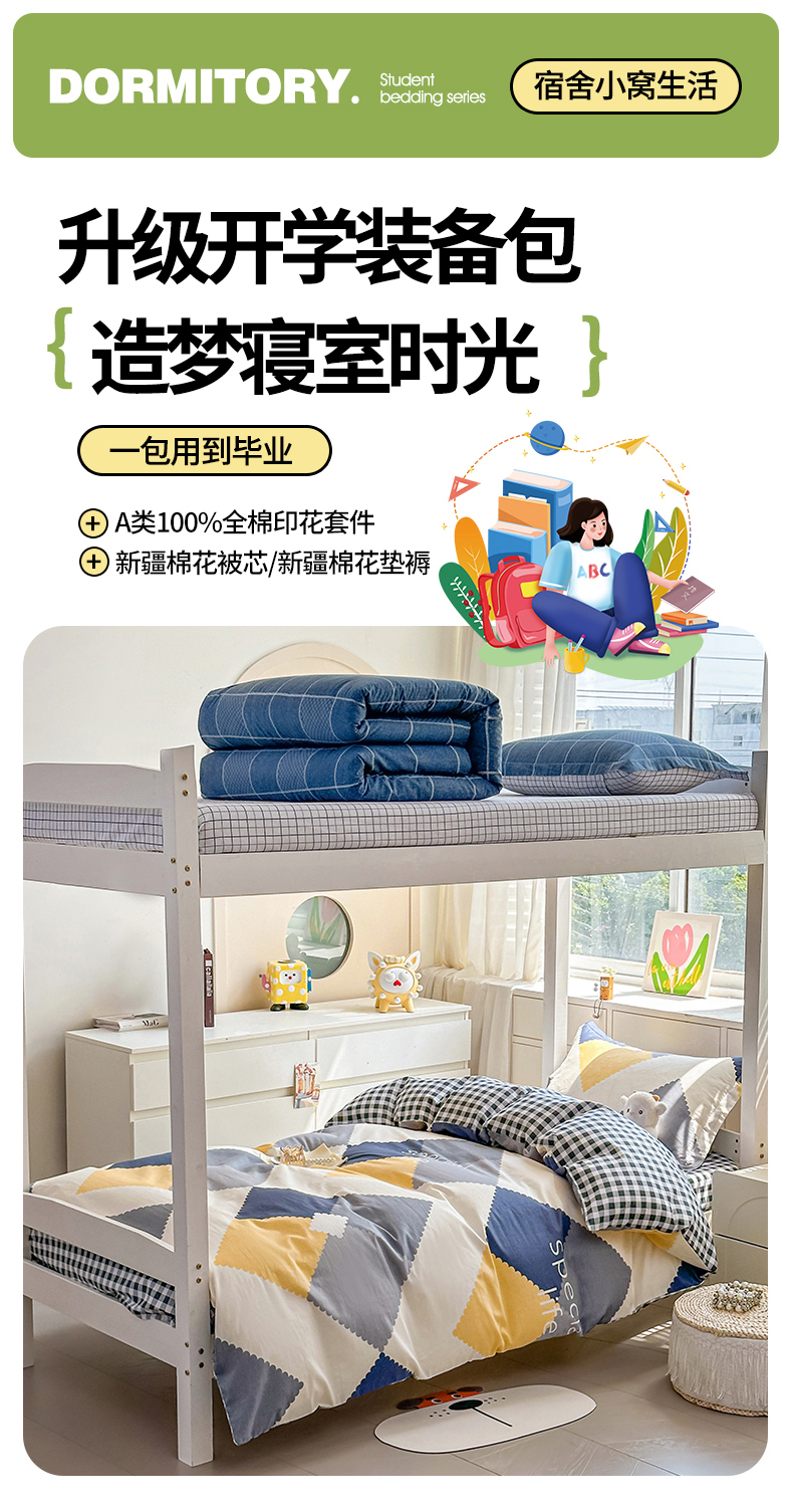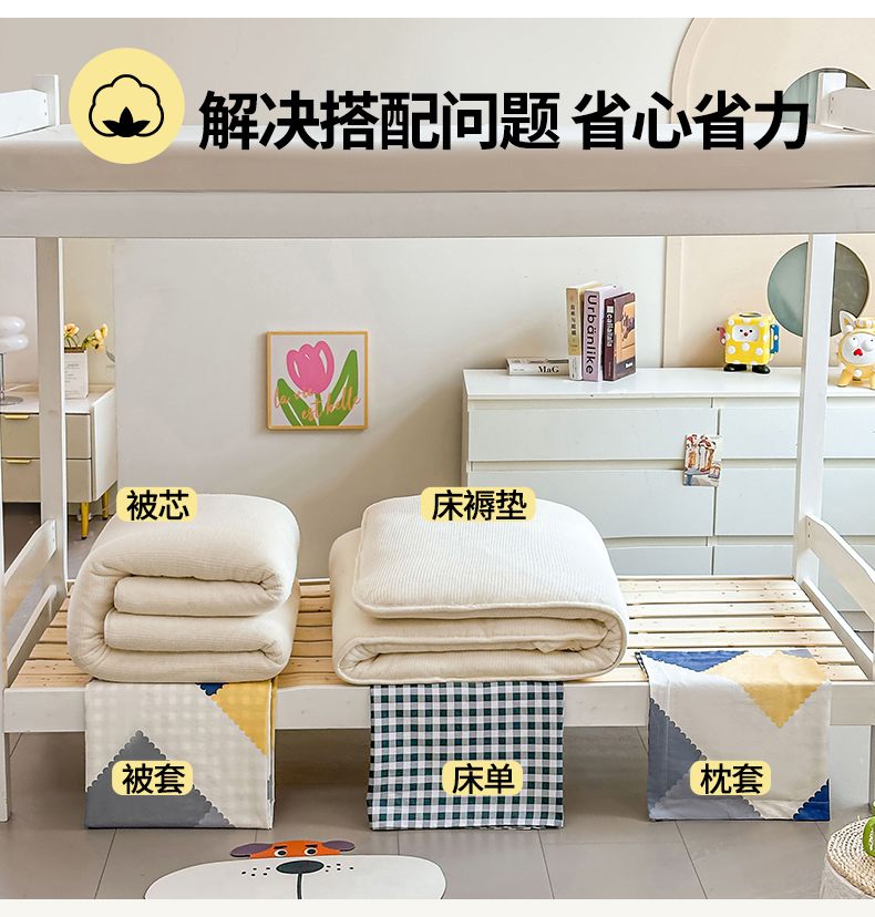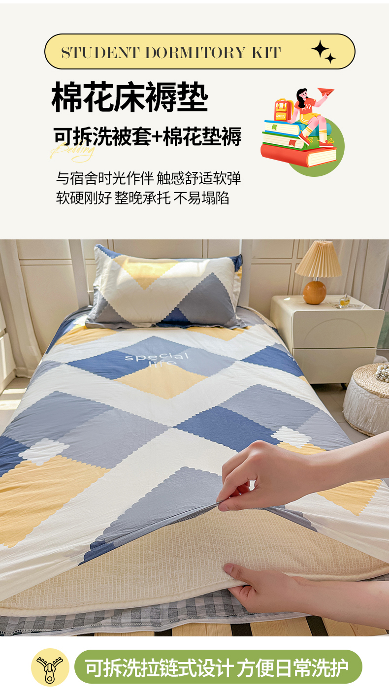 商品名称:西域种棉人·千百笠 2025新款全棉纯棉六件套大学生宿舍100%新疆棉花被子被褥一整套枕头床垫三件套 格致生活