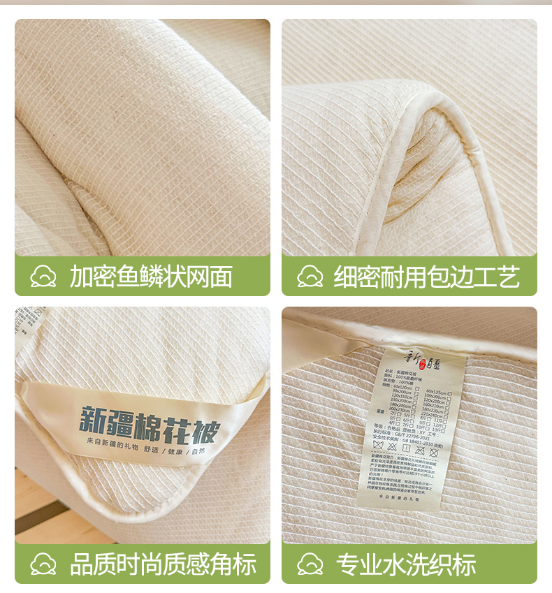 (总)西域种棉人·千百笠 2025新款A类学生款填充100%棉新疆棉花被子毛巾绣贴布绣冬被棉被全棉冬季加厚保暖纯棉花被芯 91家纺网 家纺一手货源 找家纺 (总)2025新款A类学生款填充100%棉,风铃白,风铃灰