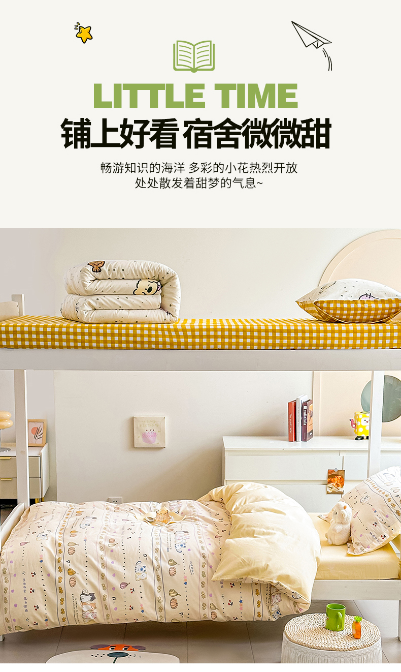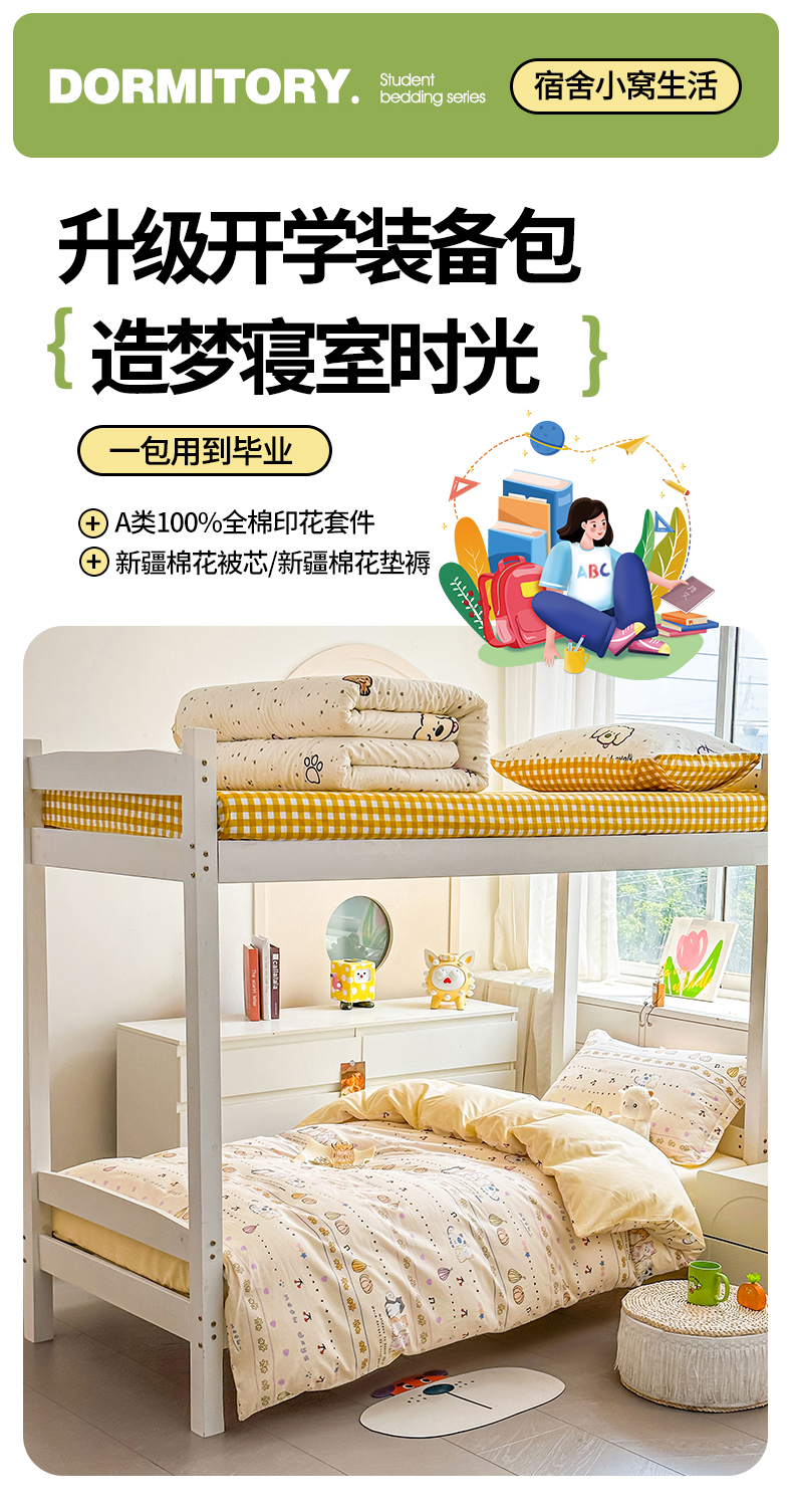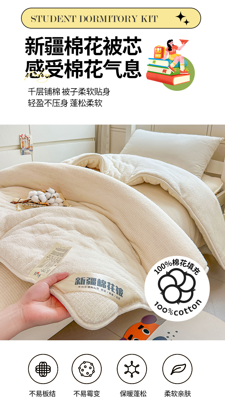 西域种棉人·千百笠 2025新款全棉纯棉六件套大学生宿舍100%新疆棉花被子被褥一整套枕头床垫三件套 南瓜派对