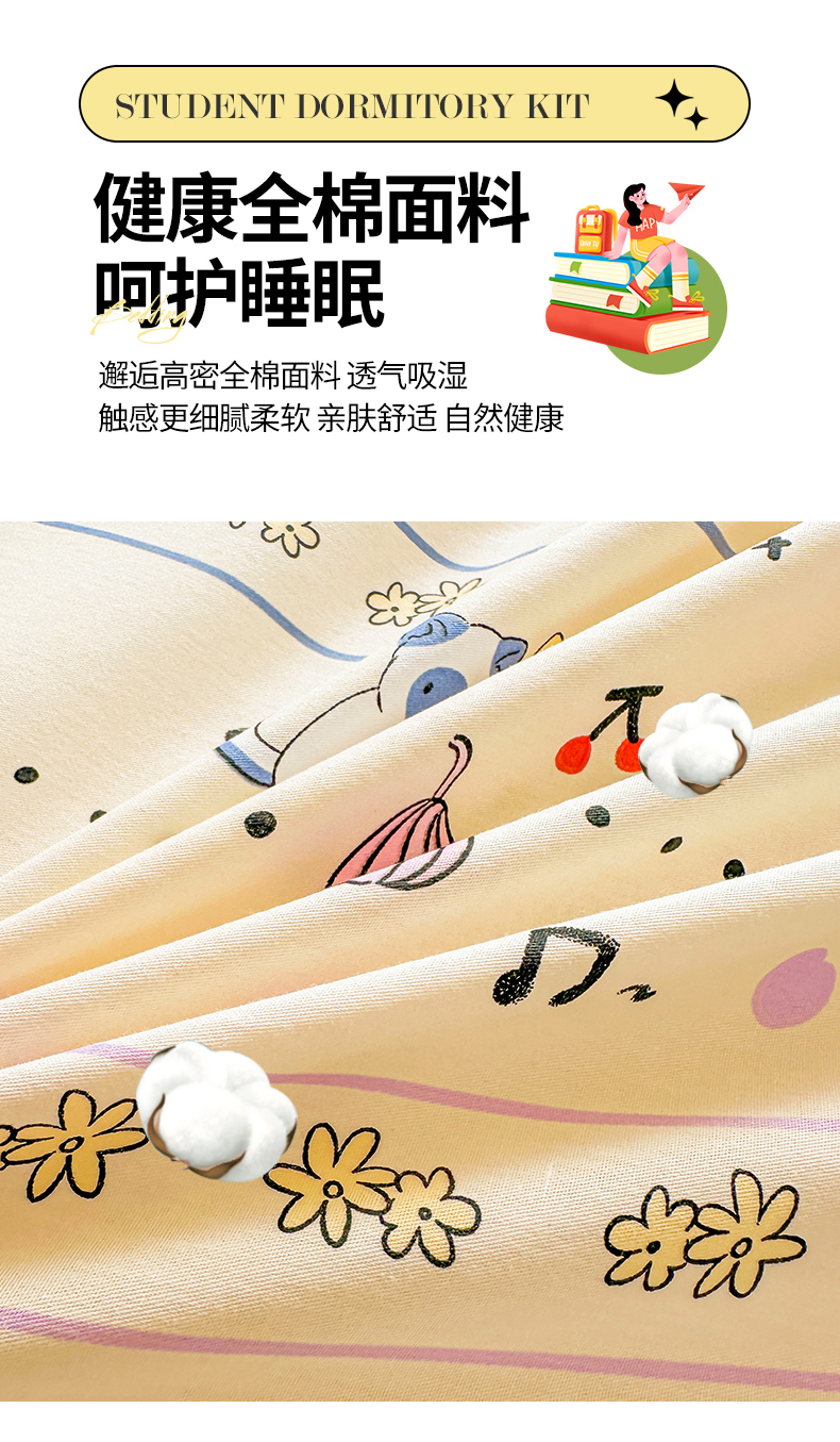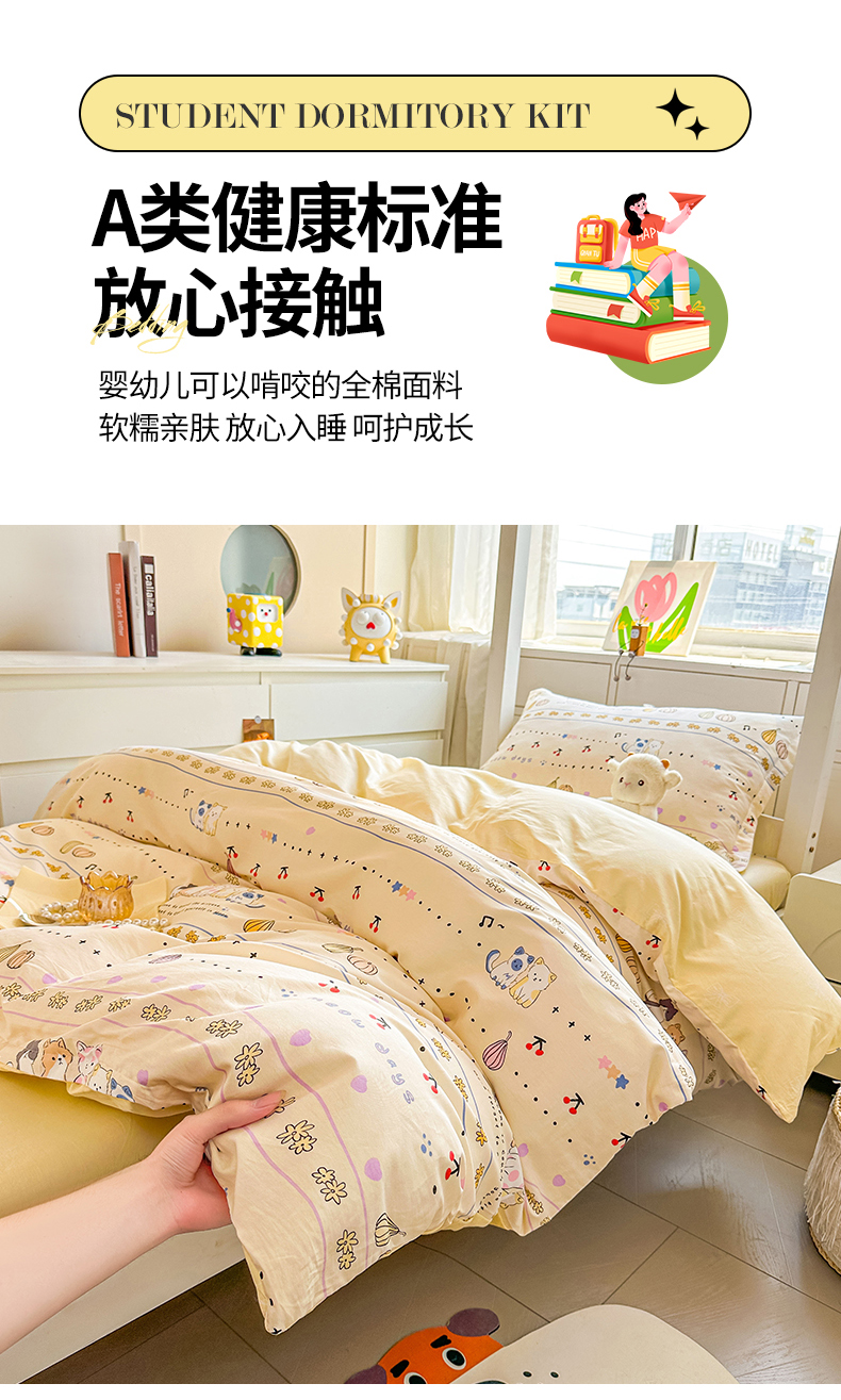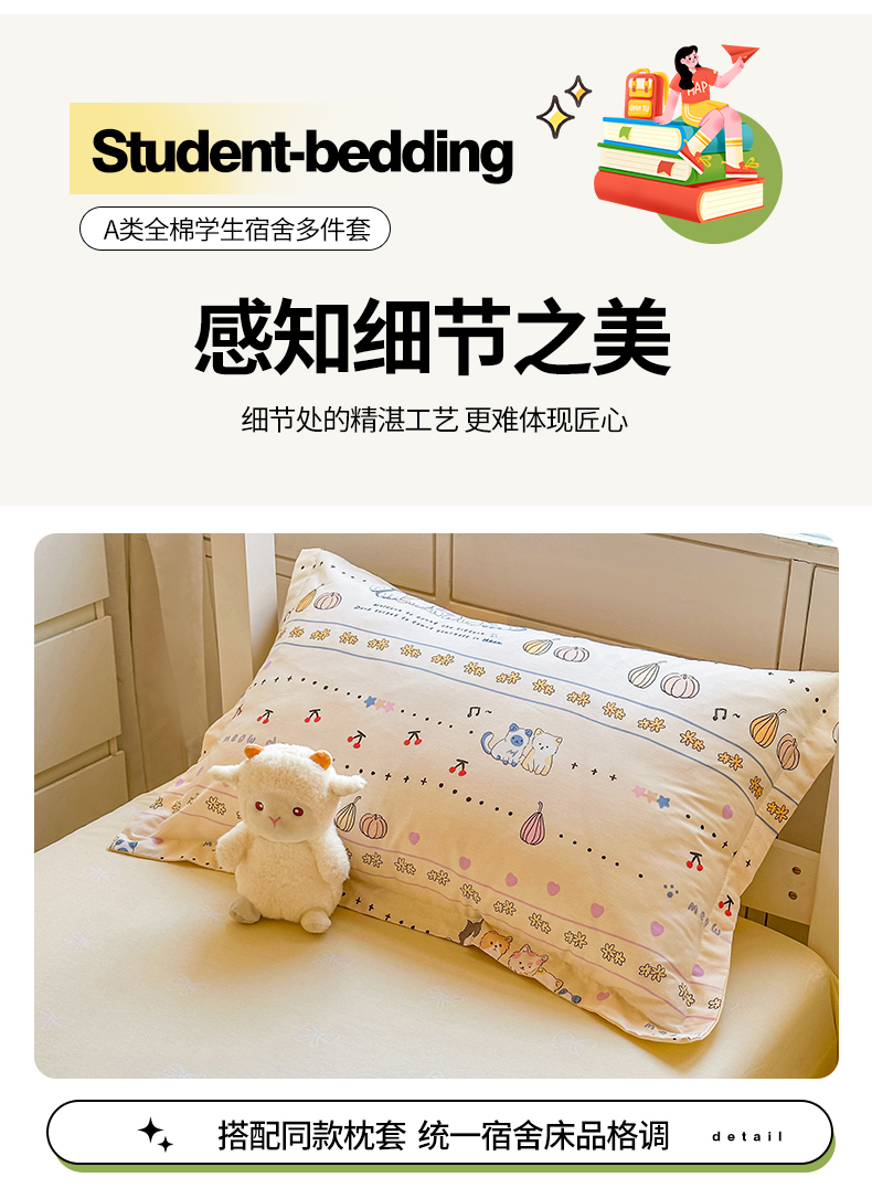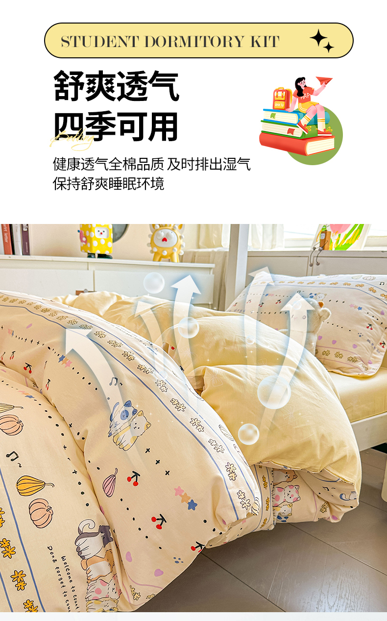 西域种棉人·千百笠 2025新款全棉纯棉六件套大学生宿舍100%新疆棉花被子被褥一整套枕头床垫三件套 南瓜派对