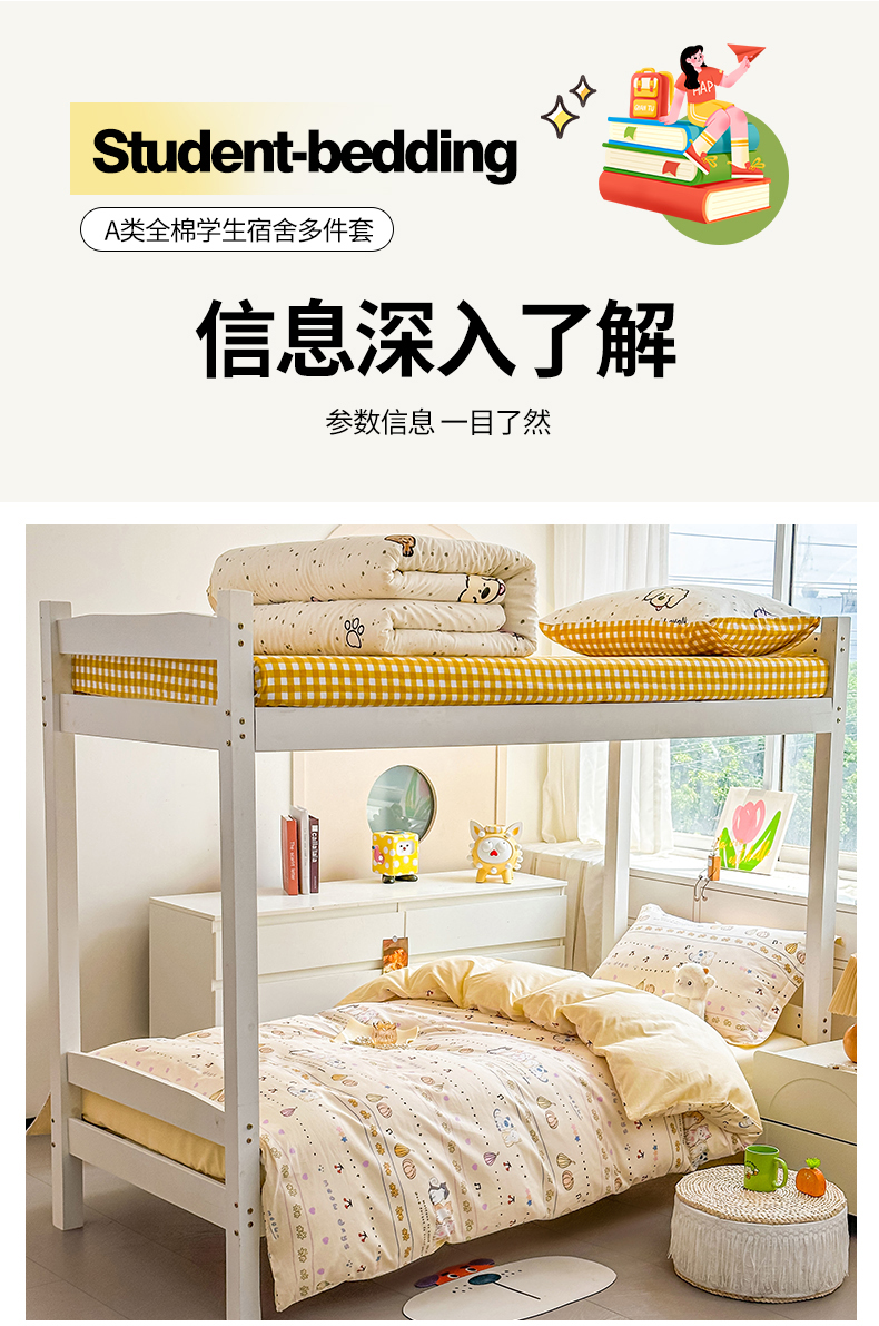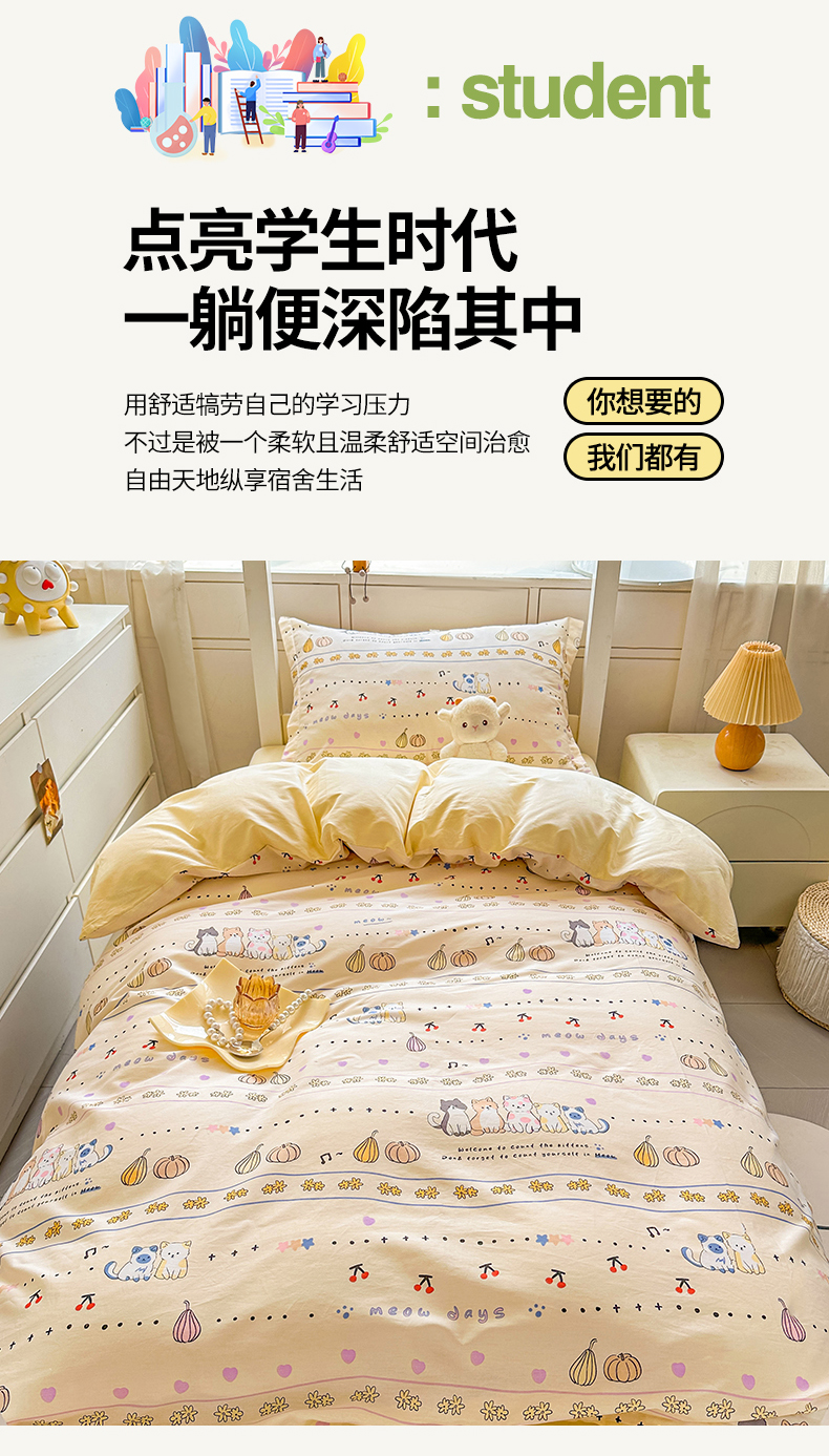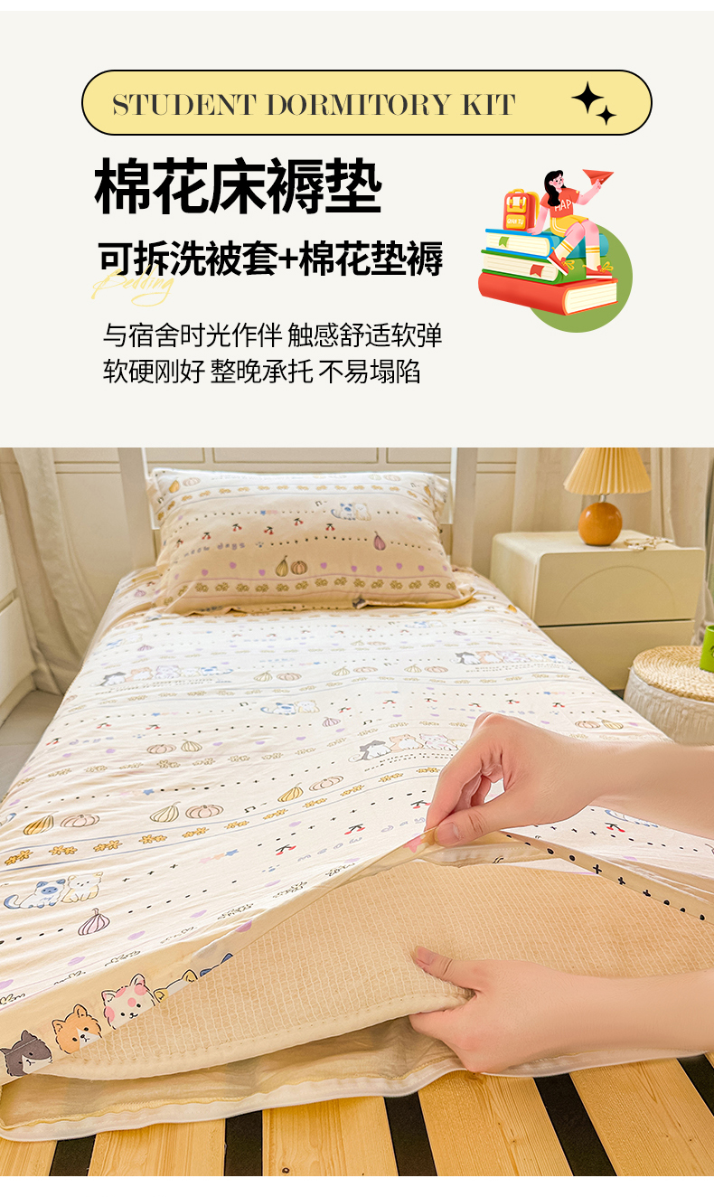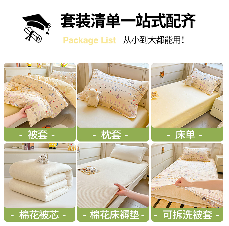 商品名称:西域种棉人·千百笠 2025新款全棉纯棉六件套大学生宿舍100%新疆棉花被子被褥一整套枕头床垫三件套 南瓜派对