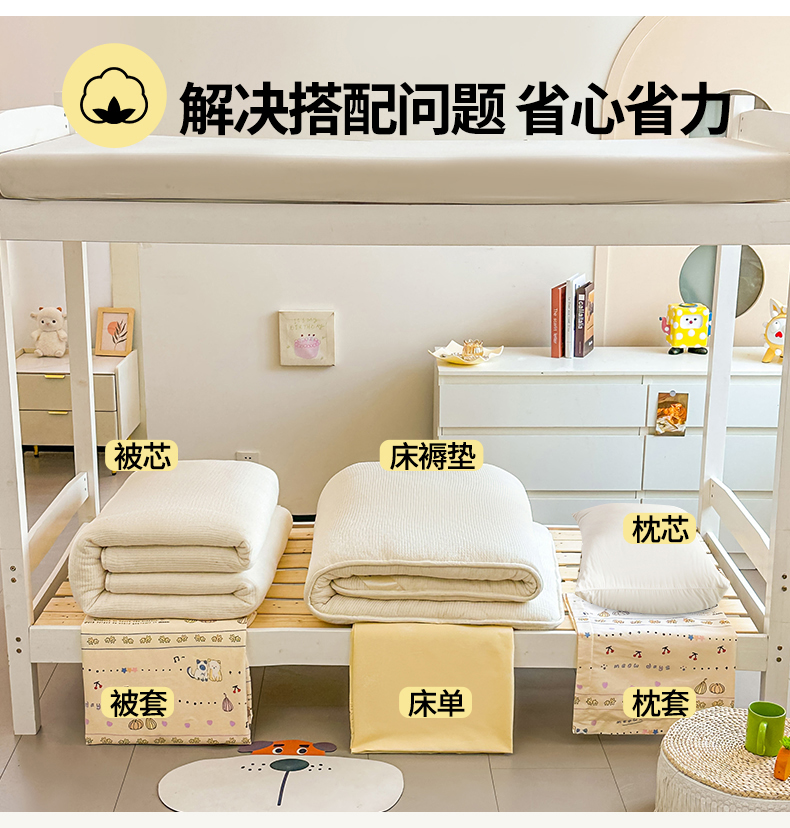 被子 > 棉被 > 西域种棉人·千百笠 2025新款全棉纯棉六件套大学生宿舍100%新疆棉花被子被褥一整套枕头床垫三件套 南瓜派对