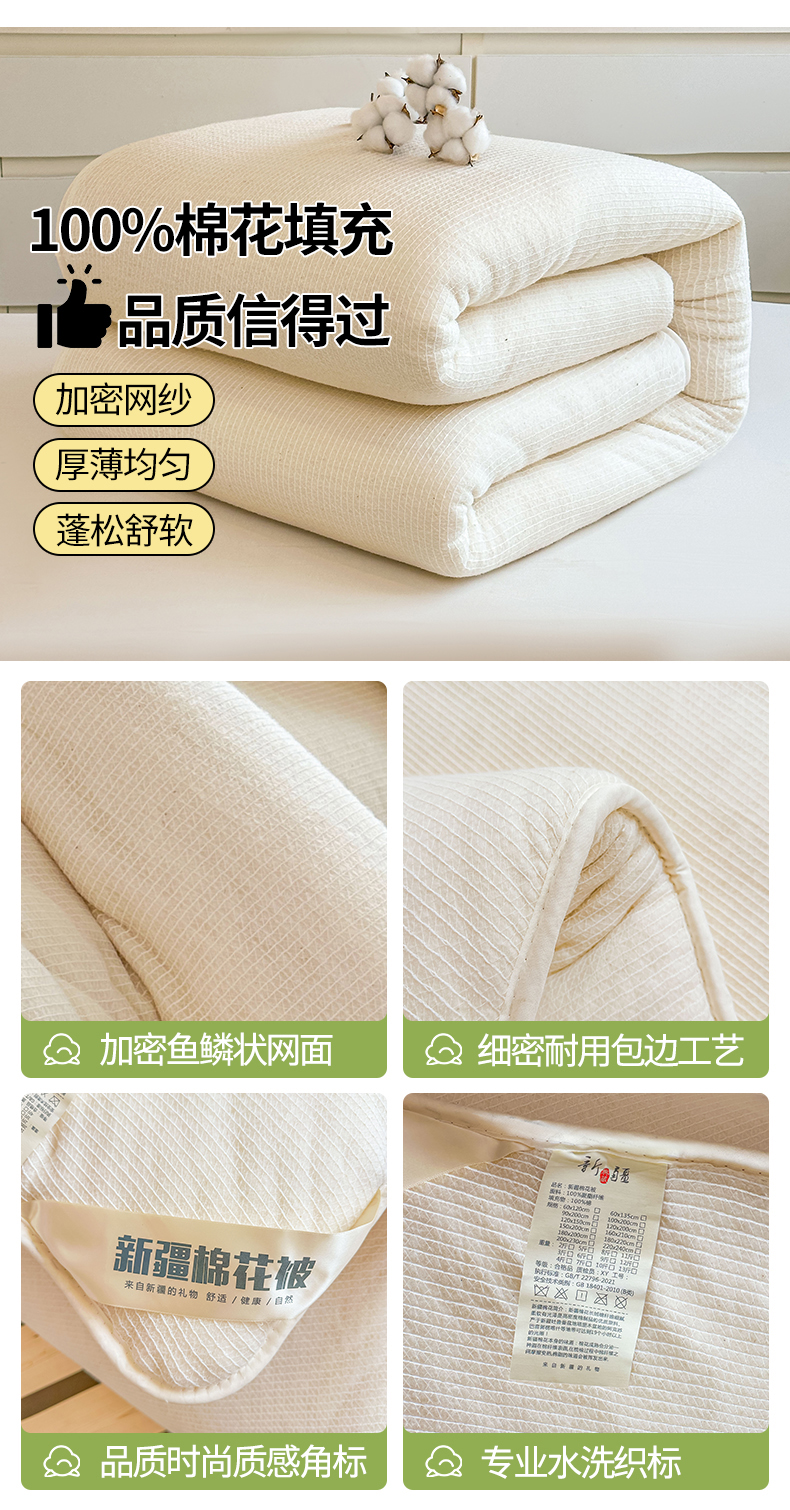 (总)西域种棉人·千百笠 2025新款A类学生款填充100%棉新疆棉花被子毛巾绣贴布绣冬被棉被全棉冬季加厚保暖纯棉花被芯 91家纺网 家纺一手货源 找家纺 (总)2025新款A类学生款填充100%棉,风铃白,风铃灰
