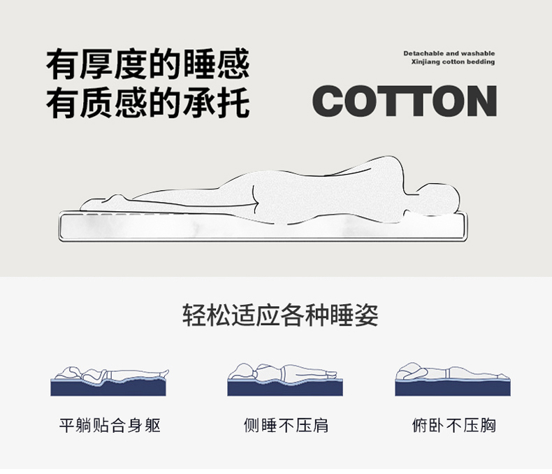 (总)西域种棉人·千百笠 2023新款100%新疆棉花全棉棉花床垫单人垫被,贵族秋,贵族灰