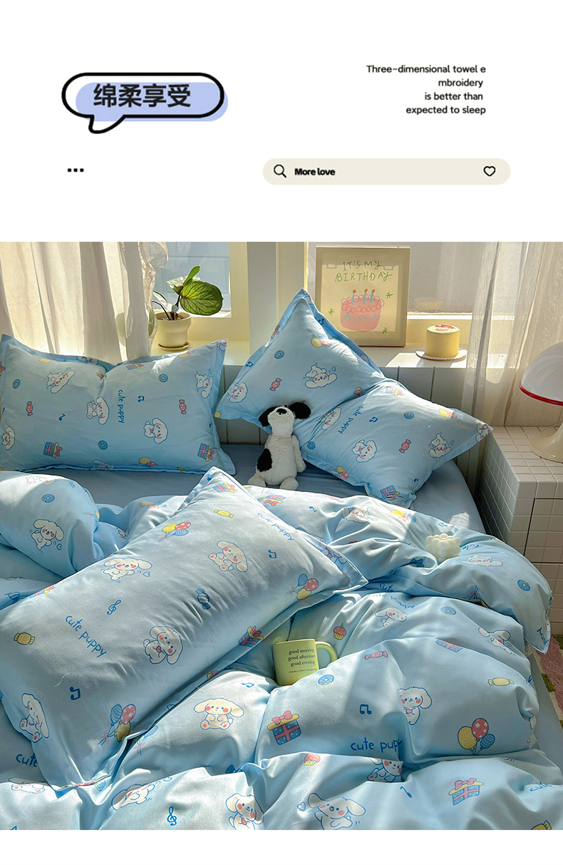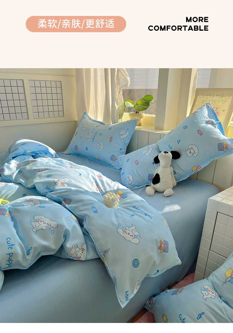 (总) 宏源家纺 2025新款A类高克重水洗云朵棉大版枕套四件套,哈喽猫粉,哈喽猫蓝,咖格小狗,可爱巴拉,恐龙时代,酷比红,腊肠狗,元气猫粉,元气猫绿