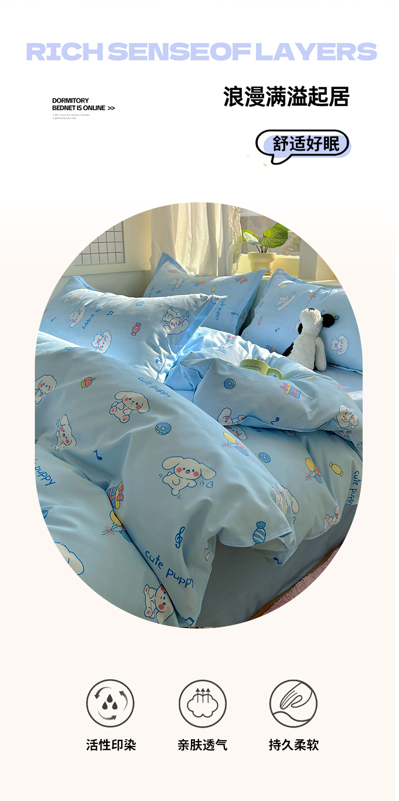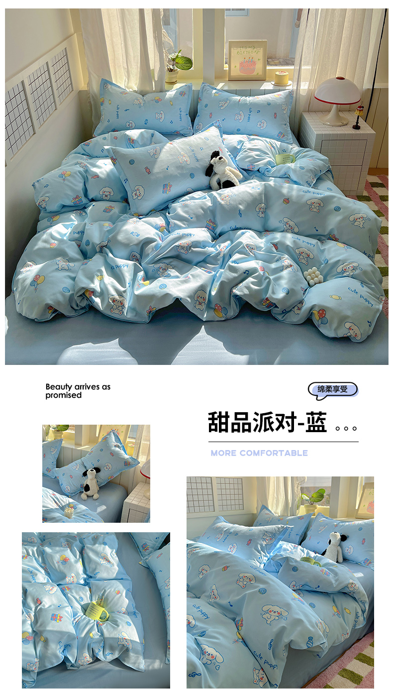 商品名称:宏源家纺 2025新款芦荟棉印花亲肤四件套 甜品派对-蓝