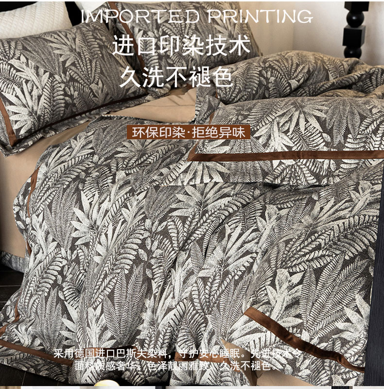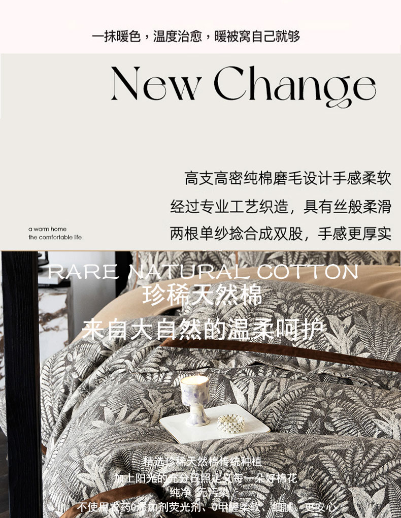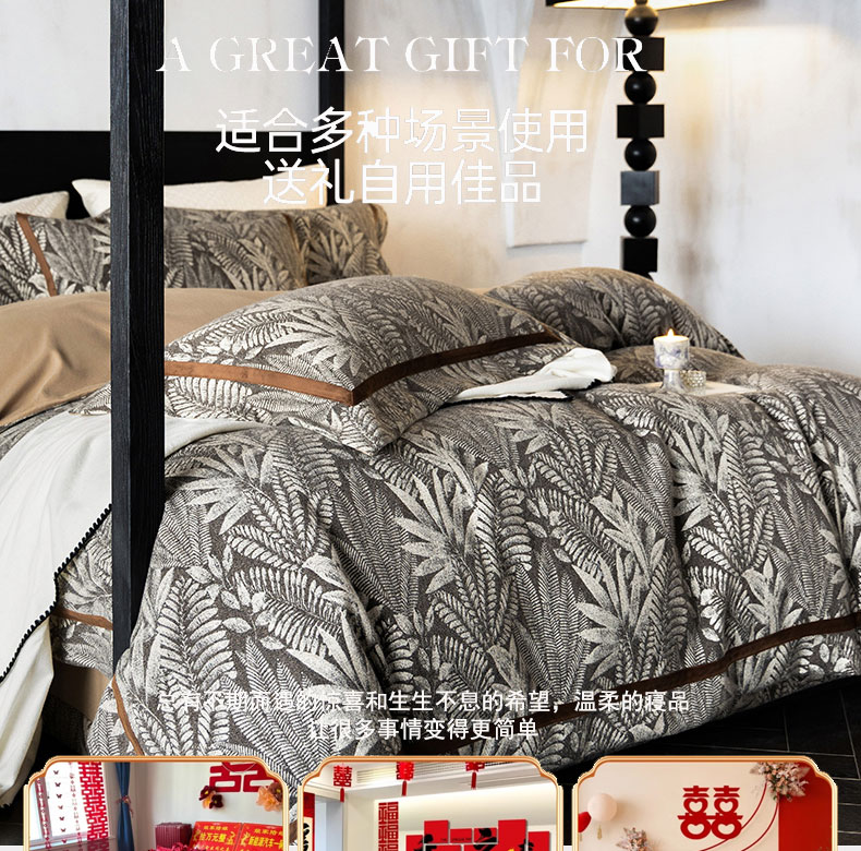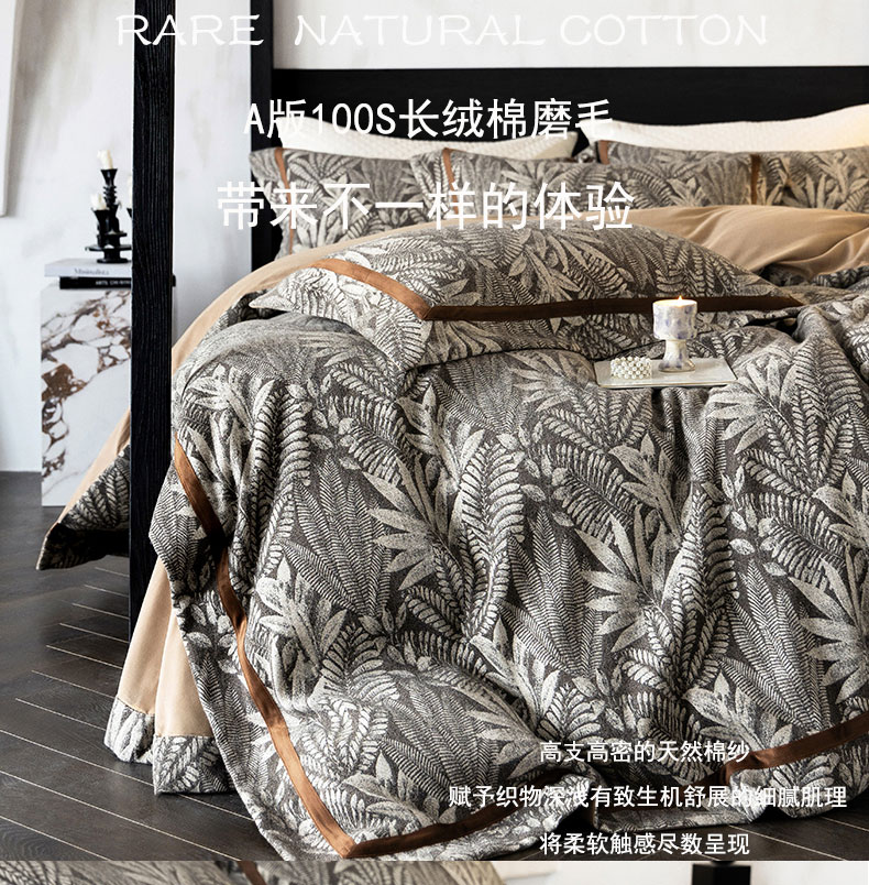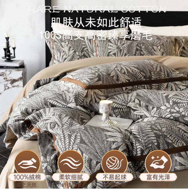 商品名称:蒂爵 2025新款A版羊毛混纺、b版新疆长绒棉时尚秋冬四件套-挪威森林 挪威森林-咖