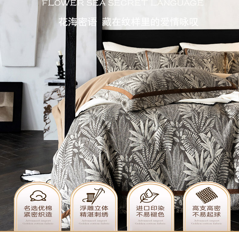 (总)蒂爵 全棉纯棉全棉长绒棉肌理纹磨毛绣花四件套洛卡,洛卡-灰,洛卡-咖,洛卡-绿