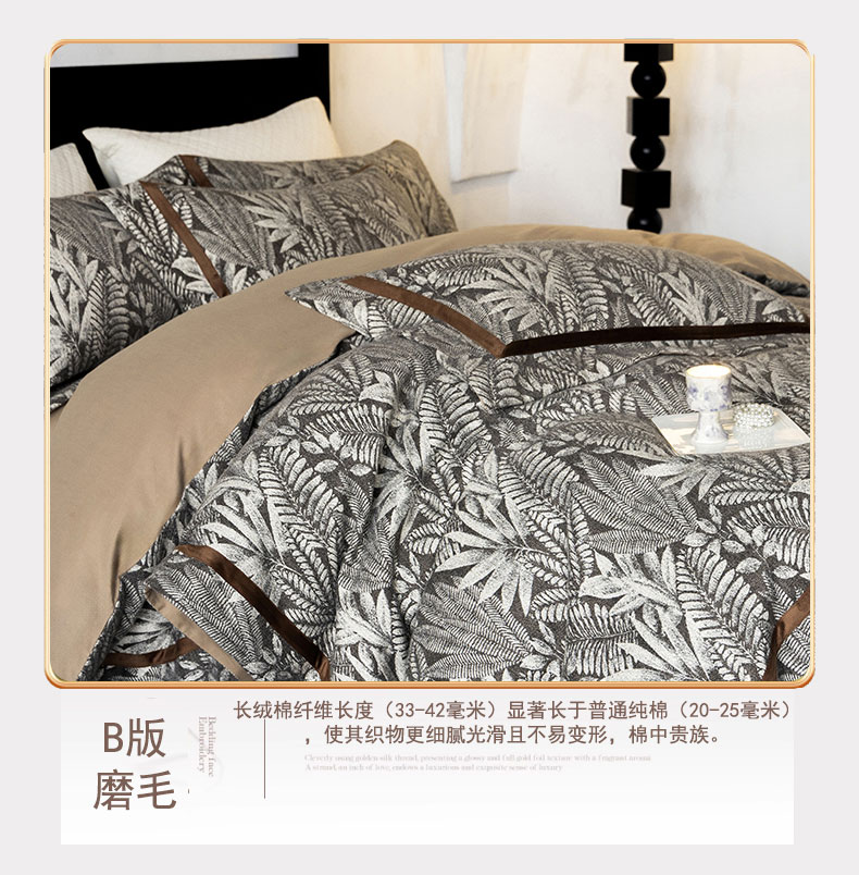 蒂爵 2025新款A版羊毛混纺、b版新疆长绒棉时尚秋冬四件套-挪威森林 挪威森林-咖