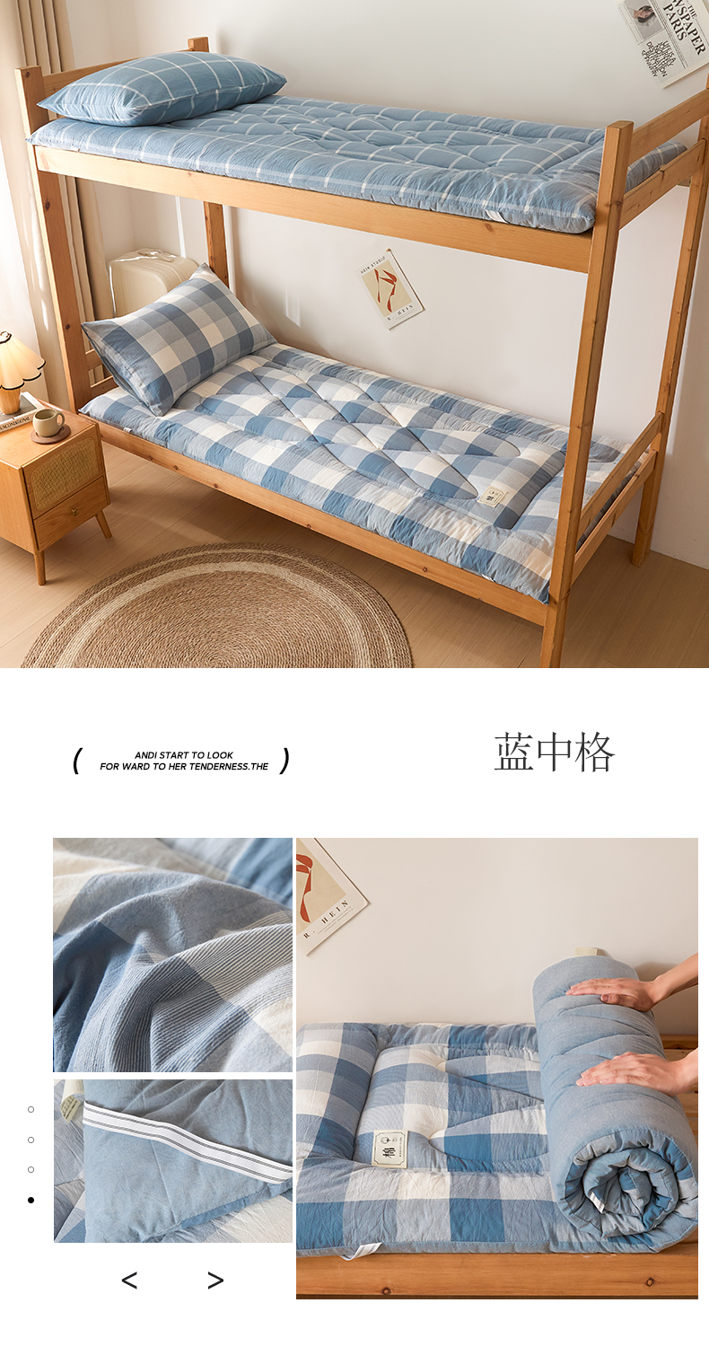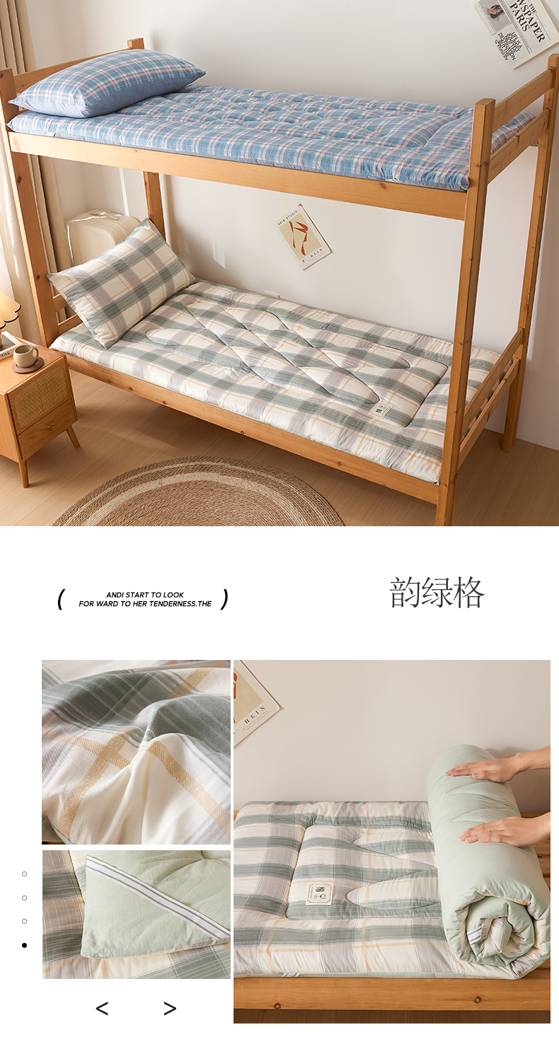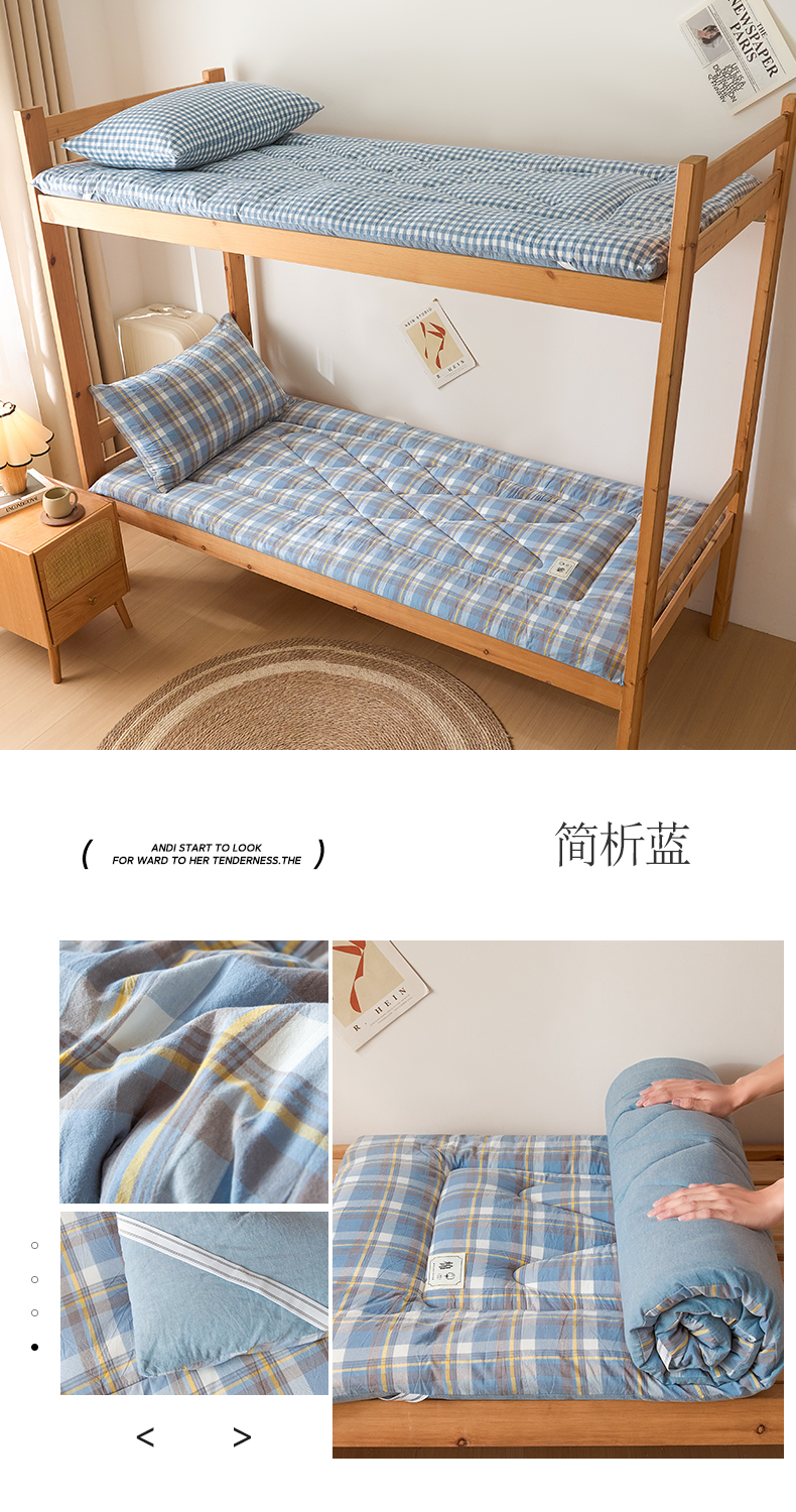 (总)爱屋及屋 2025款无印风学生棉花床垫,格韵蓝,海蓝大格,灰中格,简析蓝,蓝咖大格,蓝小格,蓝中格,韵绿格,左岸蓝