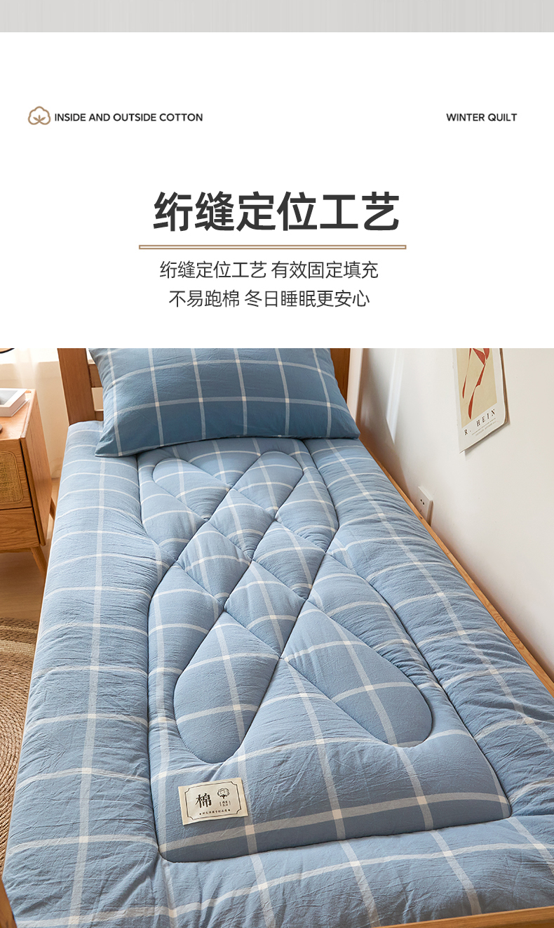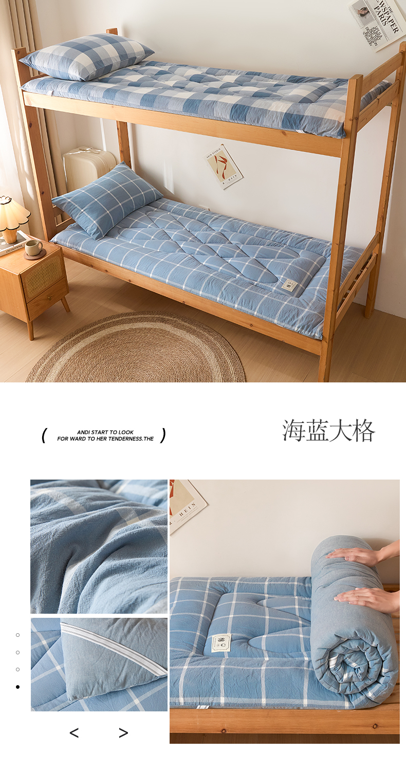 (总)爱屋及屋 2025新款无印风四季款棉花床垫子学生宿舍床褥垫被出租屋铺底软垫,格韵蓝,海蓝大格,灰中格,简析蓝,蓝咖大格,蓝小格,蓝中格,韵绿格,左岸蓝