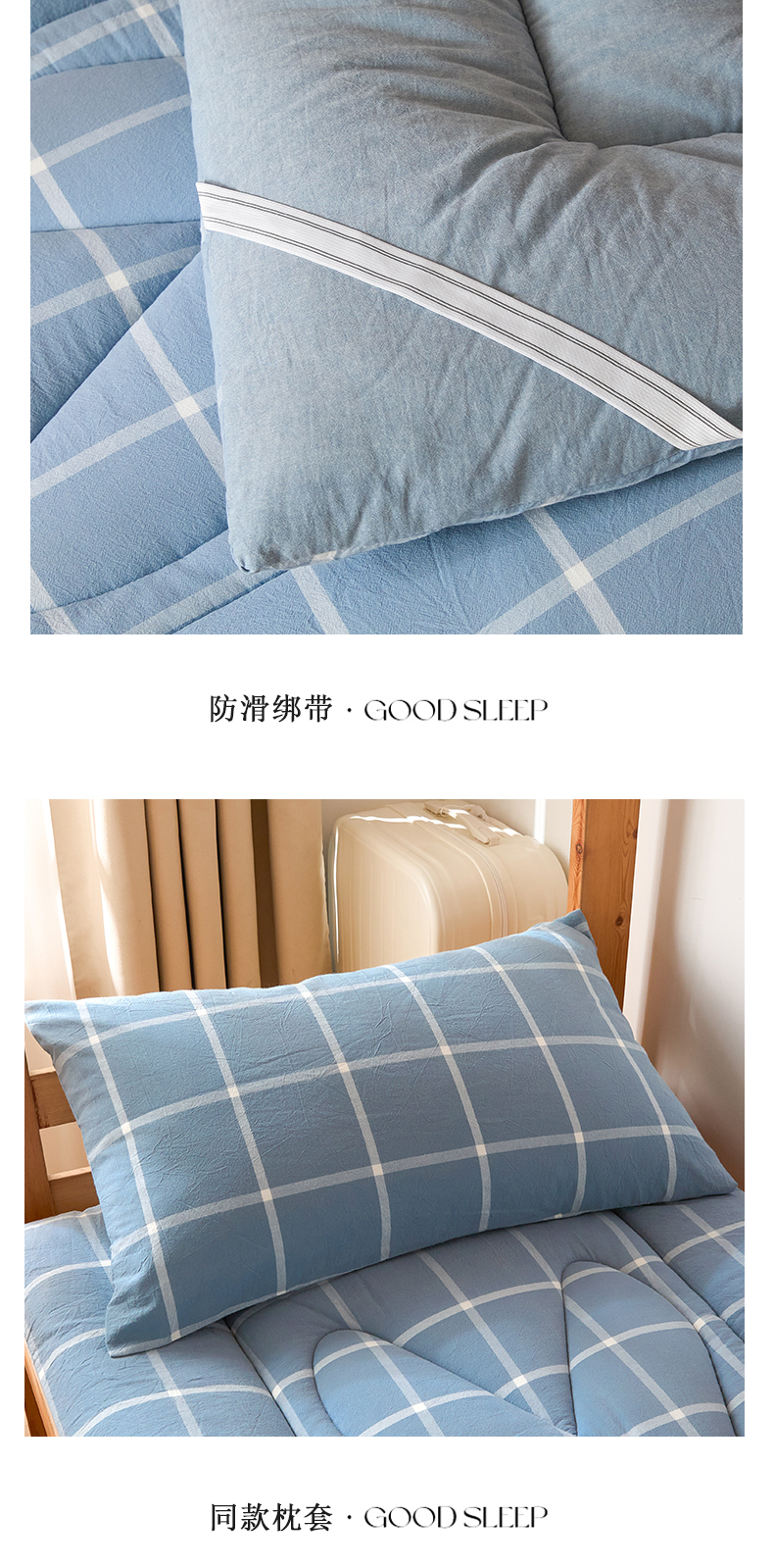 (总)爱屋及屋 2025新款水洗棉学生季大礼包学生宿舍六件套棉花被+棉花垫子+枕头+三件套一站式全套,海蓝大格,格韵蓝,光年灰,灰中格,简析粉,简析蓝,蓝咖大格,蓝小格,蓝中格,清新格,韵绿格,左岸蓝