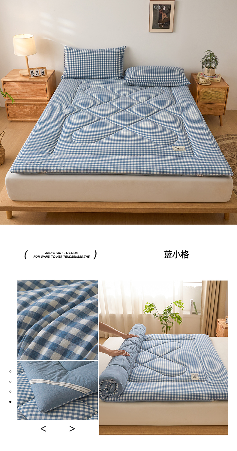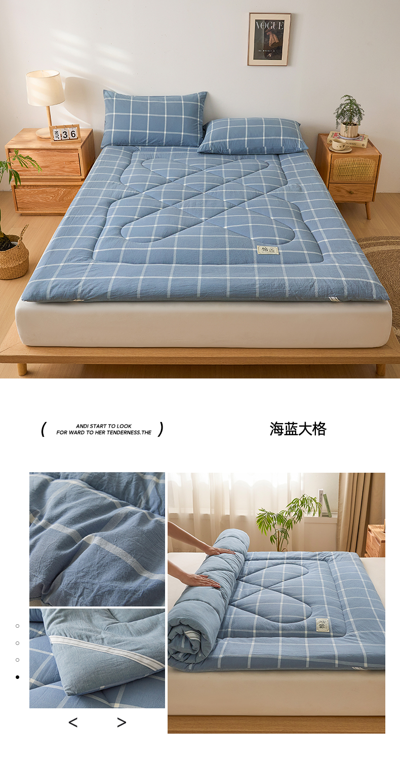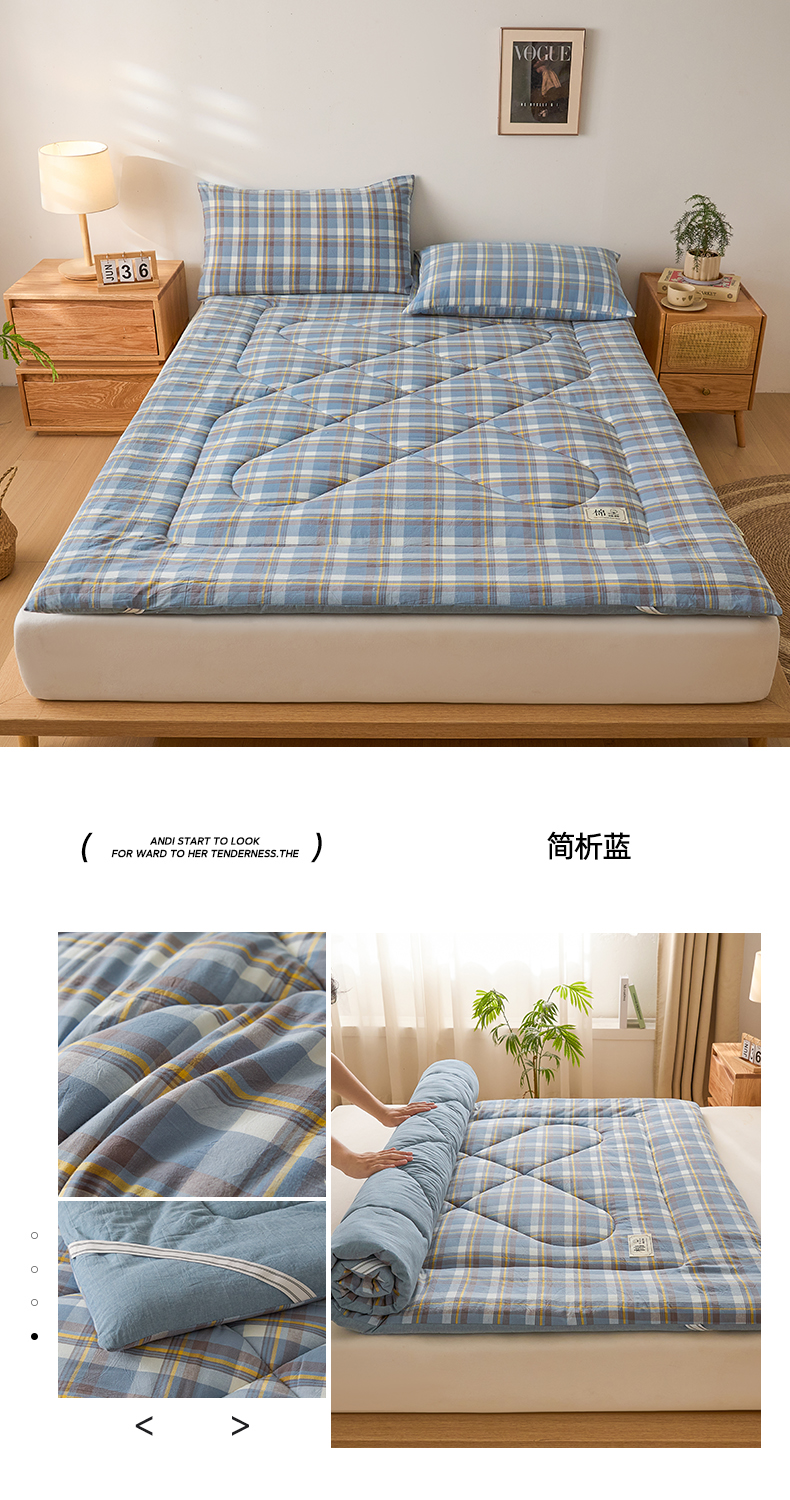 (总)爱屋及屋 2025新款无印风四季款棉花床垫子学生宿舍床褥垫被出租屋铺底软垫,格韵蓝,海蓝大格,灰中格,简析蓝,蓝咖大格,蓝小格,蓝中格,韵绿格,左岸蓝
