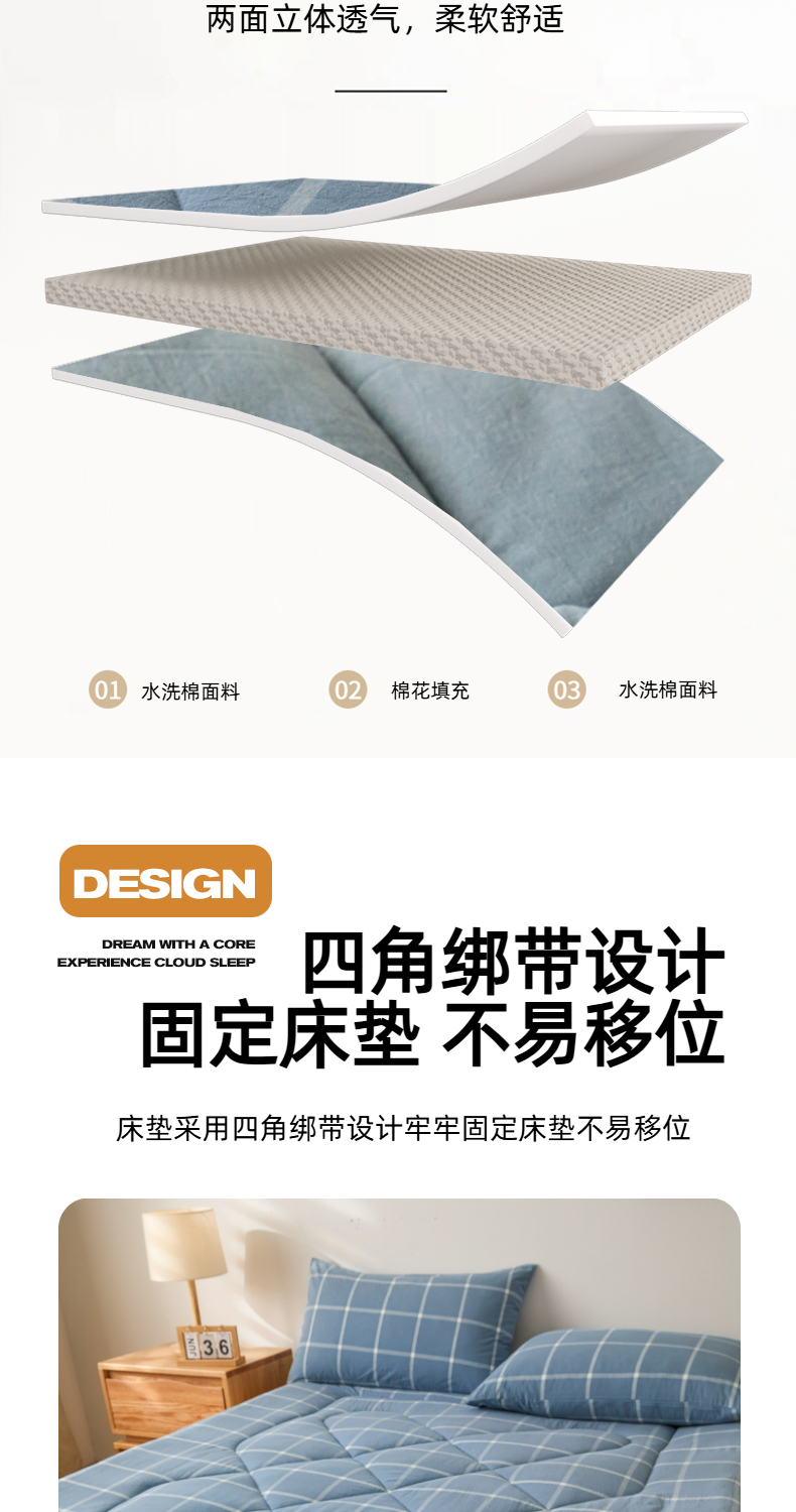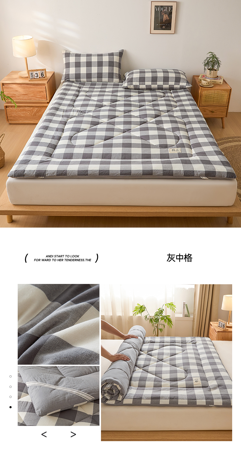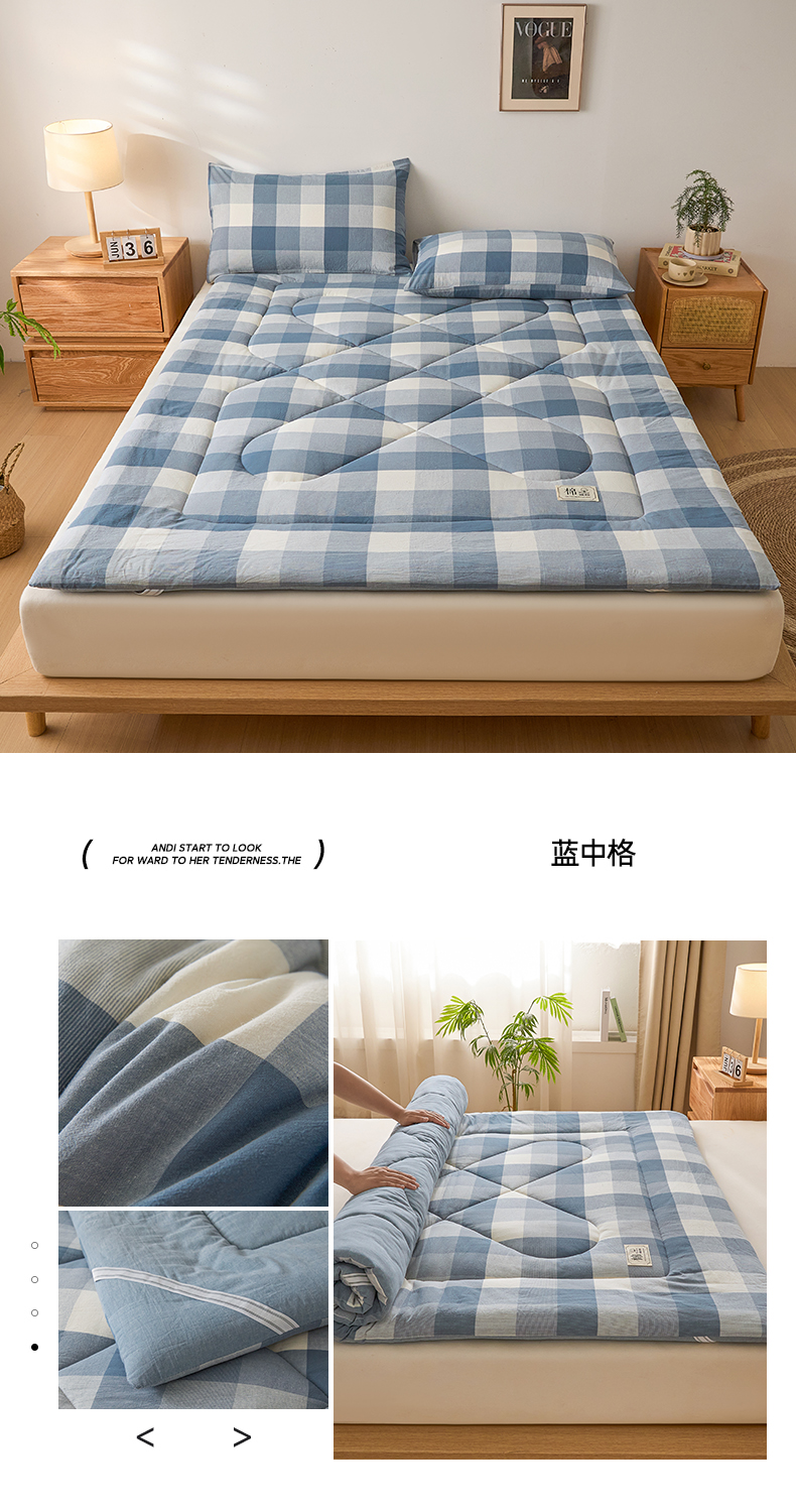 (总)爱屋及屋 2025款无印风学生棉花床垫,格韵蓝,海蓝大格,灰中格,简析蓝,蓝咖大格,蓝小格,蓝中格,韵绿格,左岸蓝