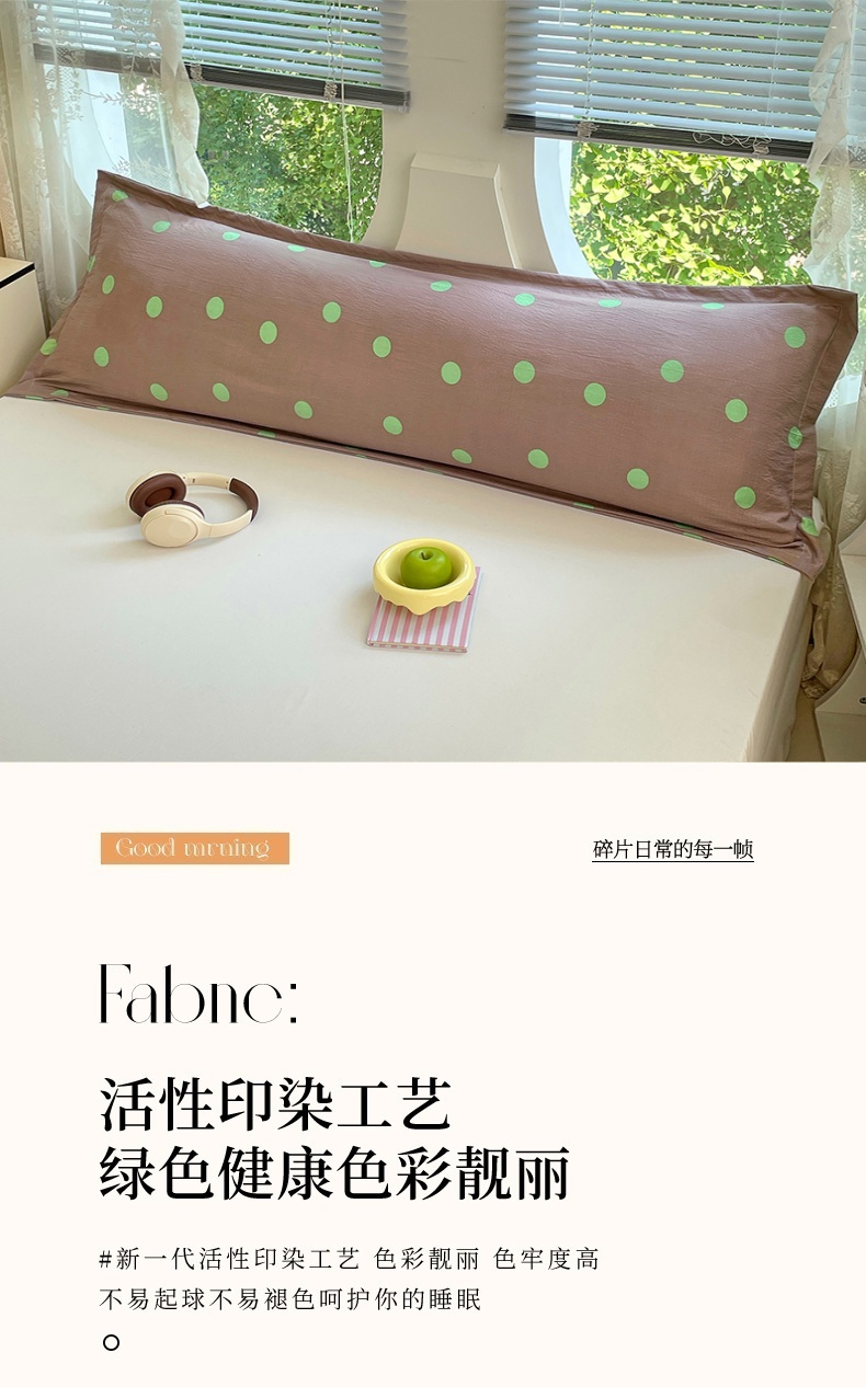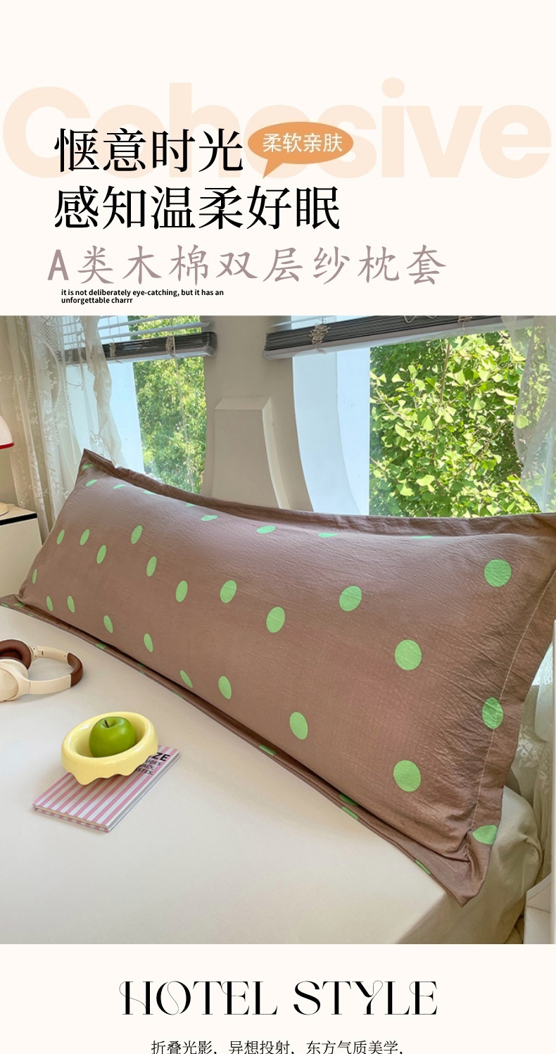 商品名称:梦舒羽 2025新款双层纱双人枕套情侣学生长枕芯套枕头内胆套-缤纷波点 波点-卡其绿