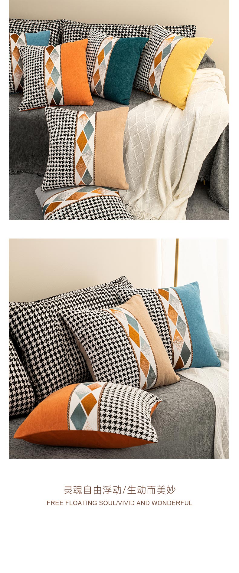 商品名称:新奇异 2025新款仿超柔雪尼尔提花千鸟格方块抱枕 千鸟格方块-橘黄