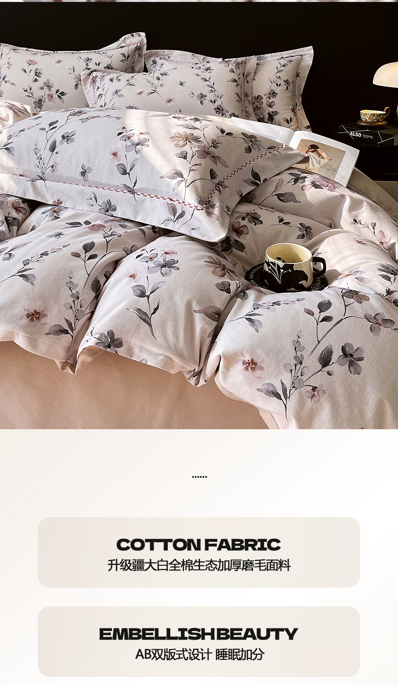 商品名称:慕希家纺 2025新款疆大白全棉纯棉加厚生态磨毛四件套 悦野-米