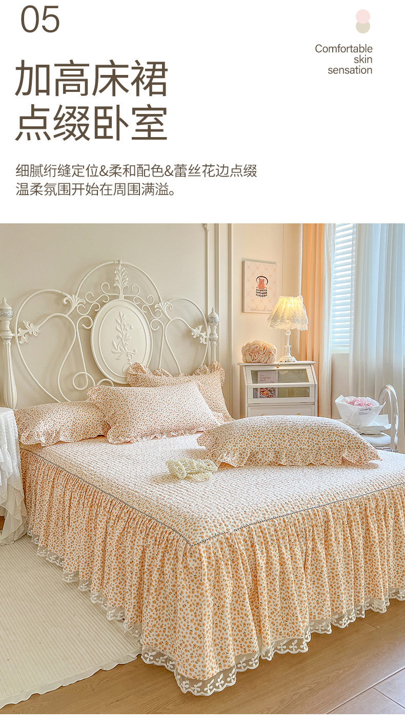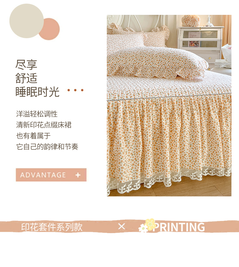网红馆(ck家纺)2025新款针织印花床裙四件套 暖阳绿意