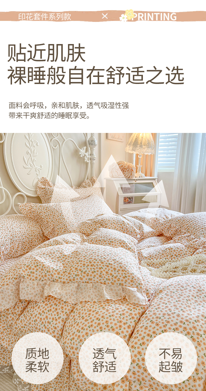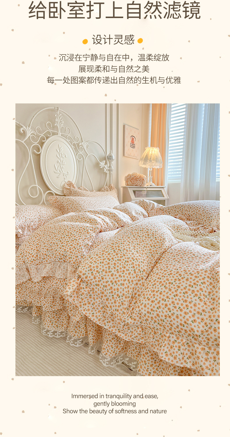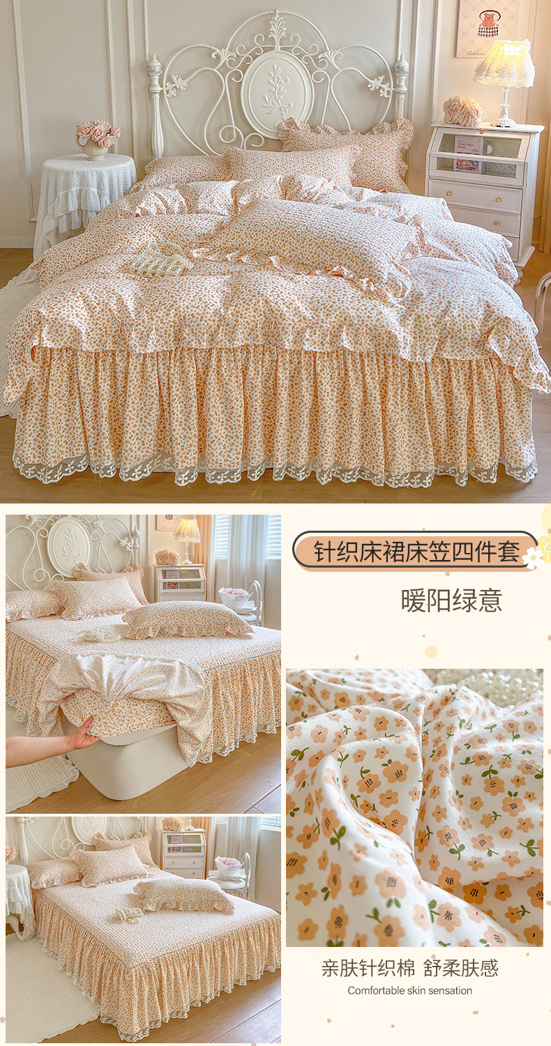 商品名称:网红馆(ck家纺)2025新款针织印花床裙四件套 暖阳绿意