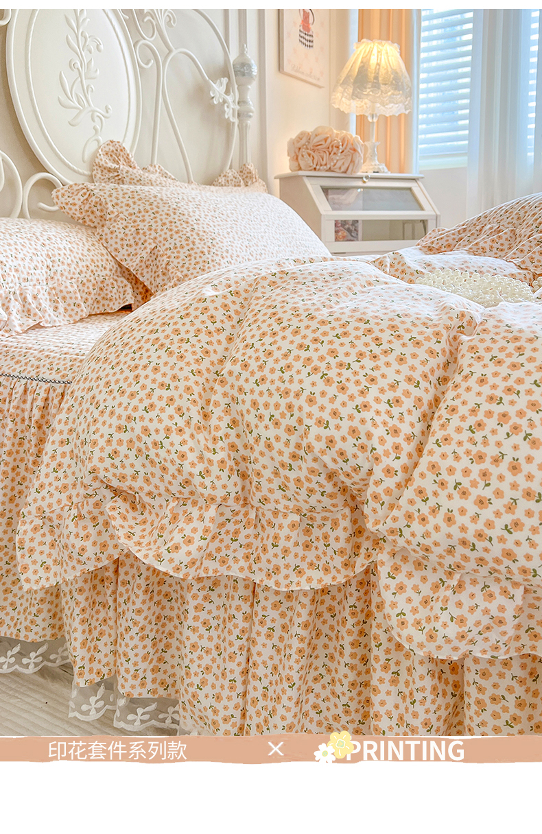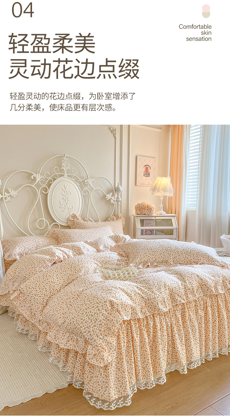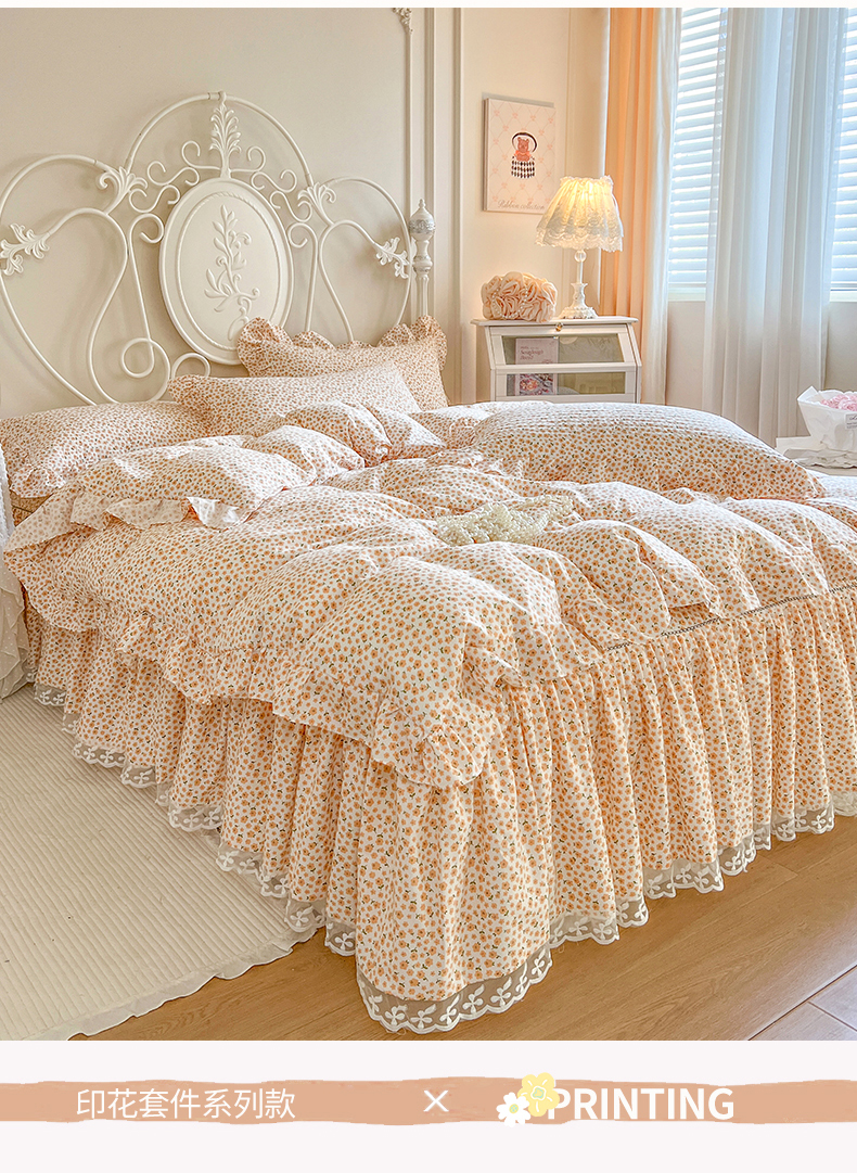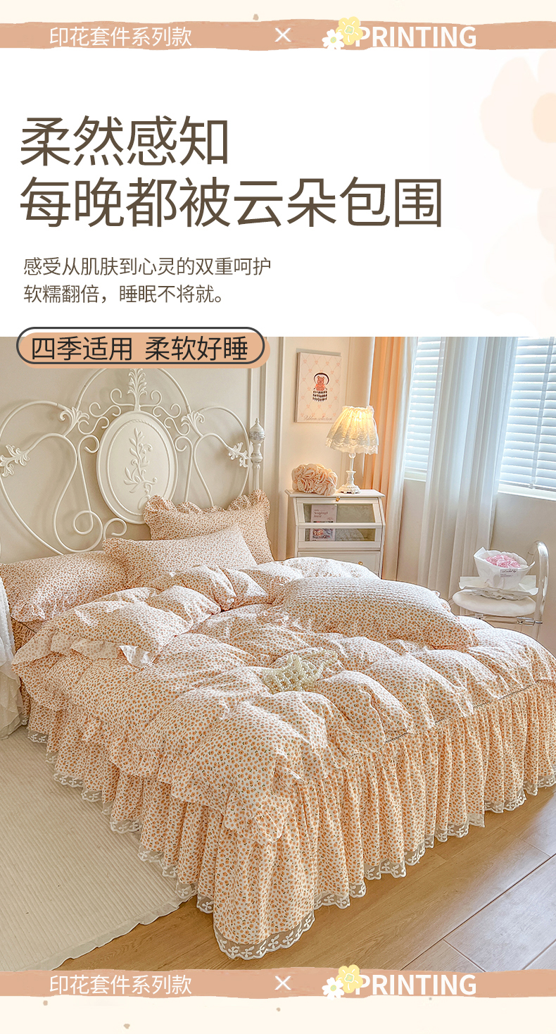 (总)网红馆(ck家纺) 2025新款全棉磨毛印花床裙款复古法式优雅四件套,花舞漫天-粉,玫瑰趣事-粉,玫瑰趣事-灰,梦语-桔