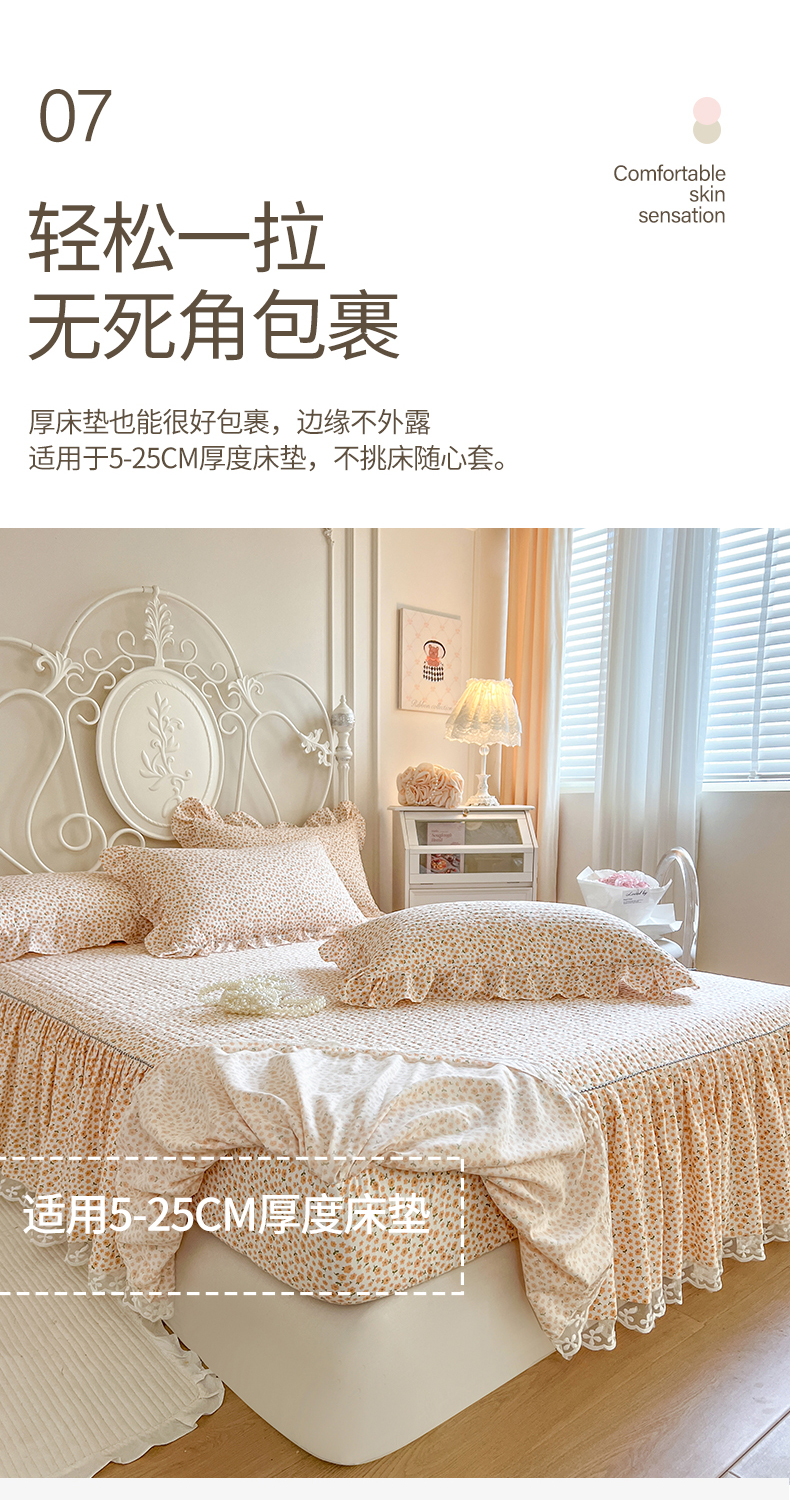 (总)网红馆(ck家纺) 2026新款全棉蕾丝花边床裙款床笠晨暮花间系列,绯红,粉色,麦绿,米色,浅紫,雾蓝