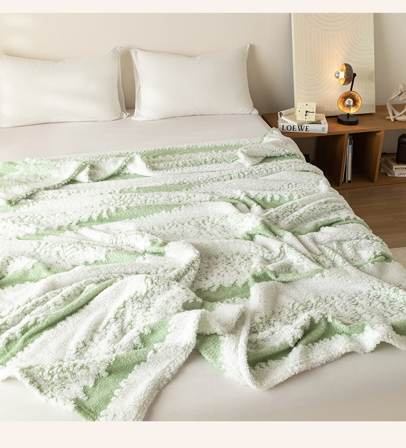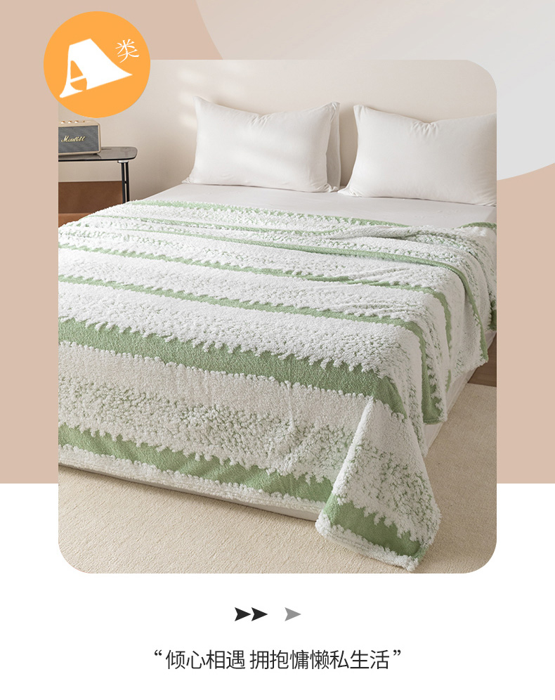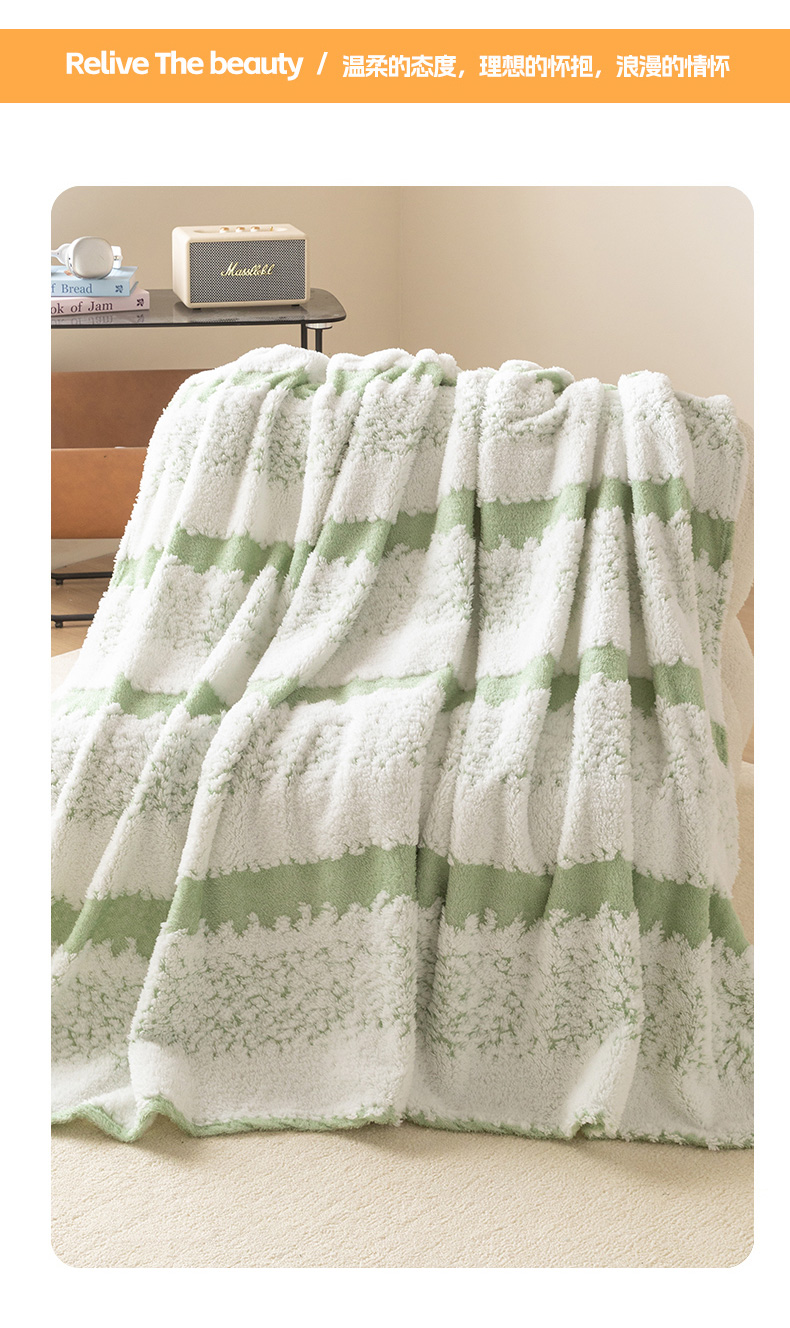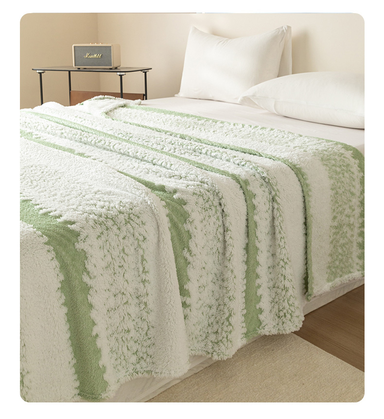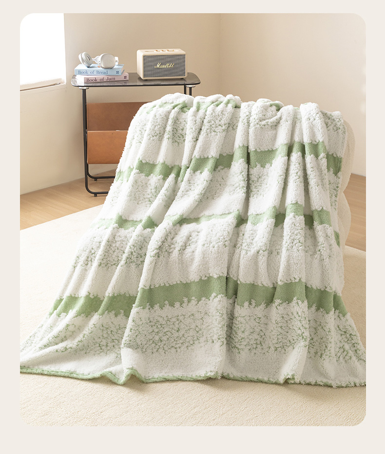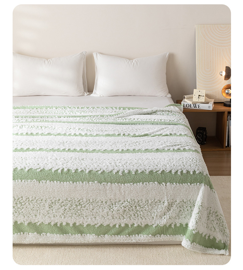 商品名称:梵心家纺 2025新款阳离子双色提花毛毯清新条纹风简约时尚毯子毛毯-可供跨境电商 阳离子-绿