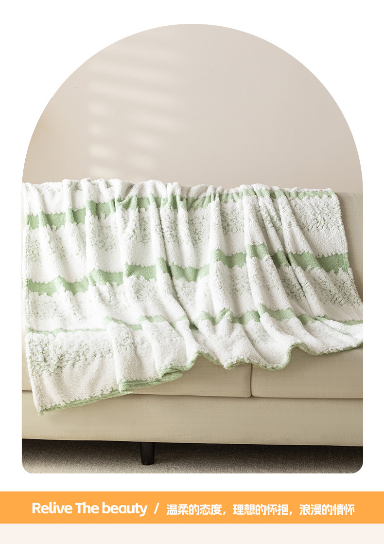 梵心家纺 2025新款阳离子双色提花毛毯清新条纹风简约时尚毯子毛毯-可供跨境电商 阳离子-绿