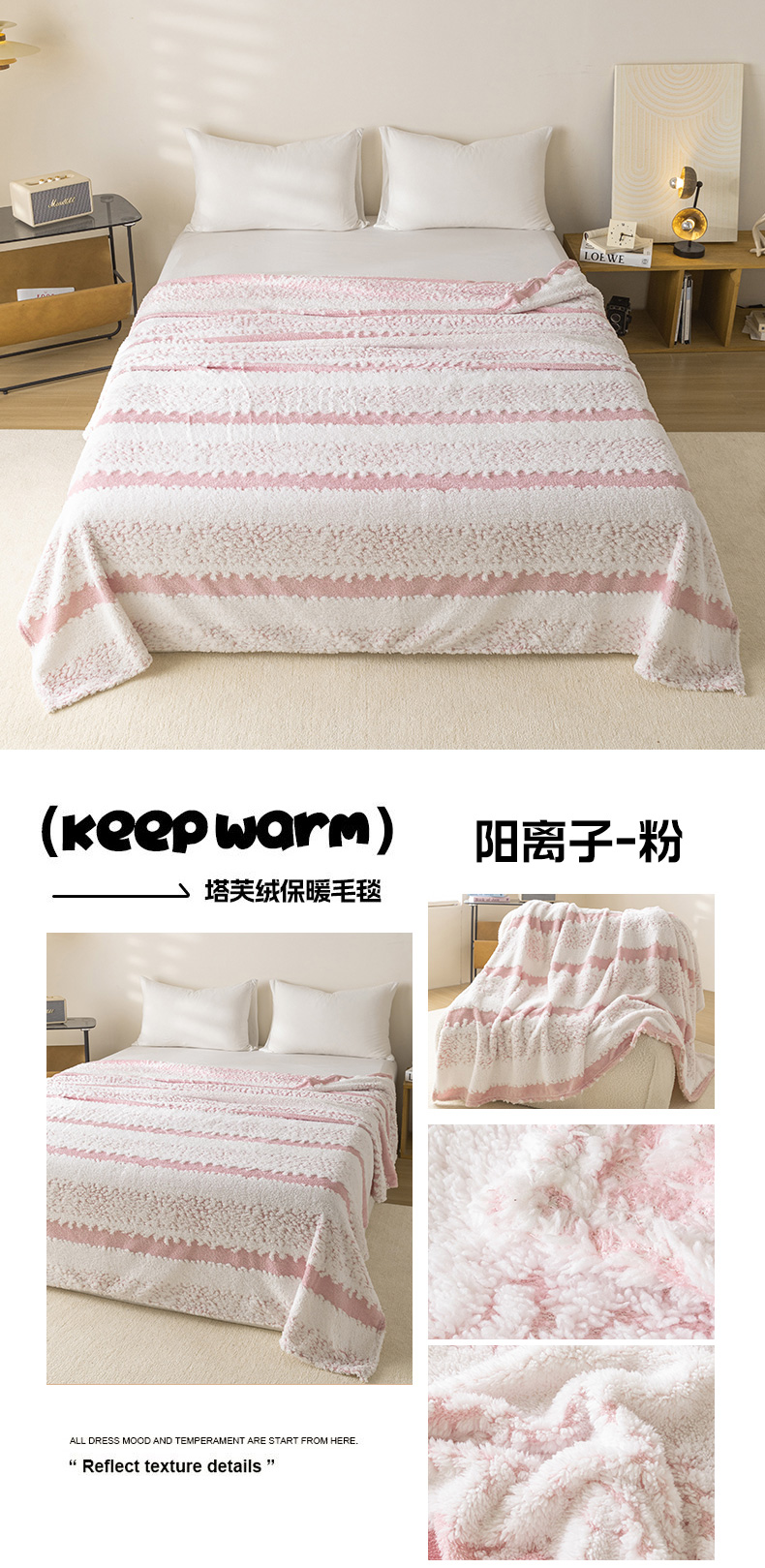 (总)梵心家纺 2025新款阳离子双色提花毛毯清新条纹风简约时尚毯子毛毯-可供跨境电商,阳离子-粉,阳离子-黑,阳离子-灰,阳离子-咖,阳离子-绿