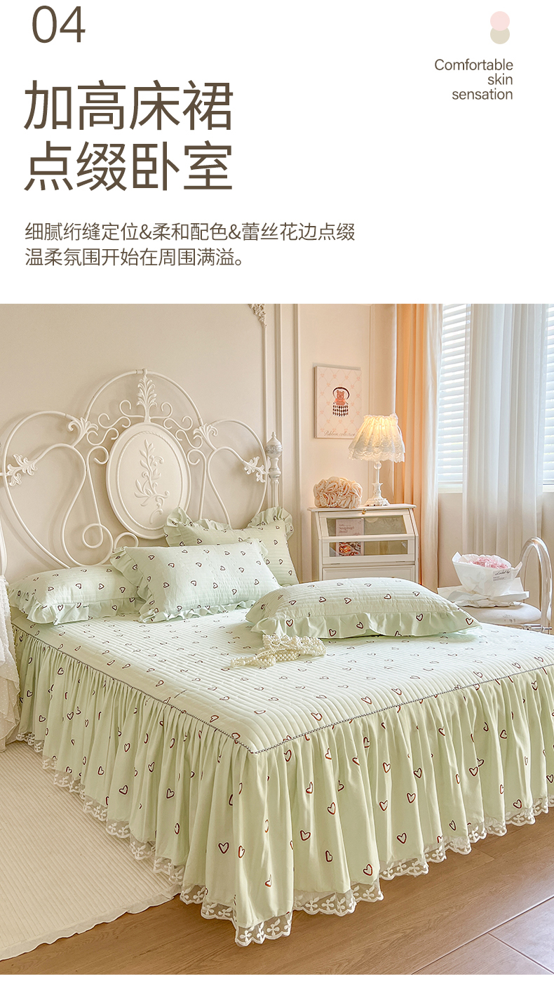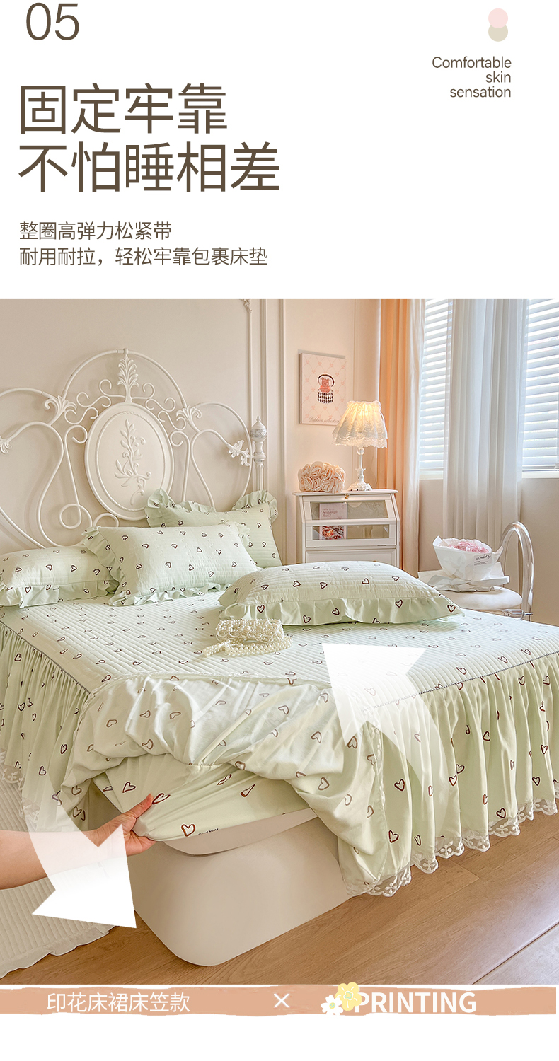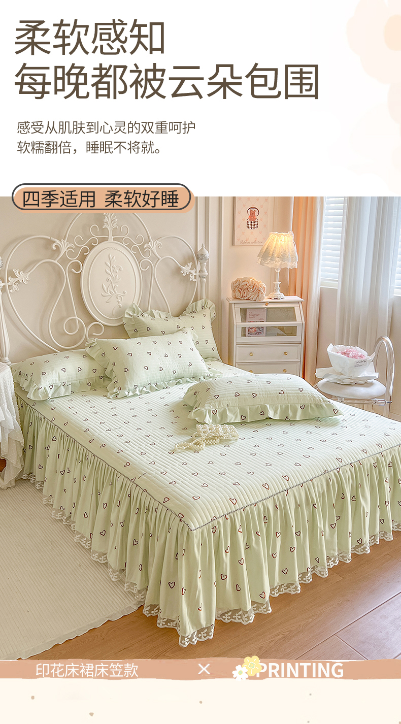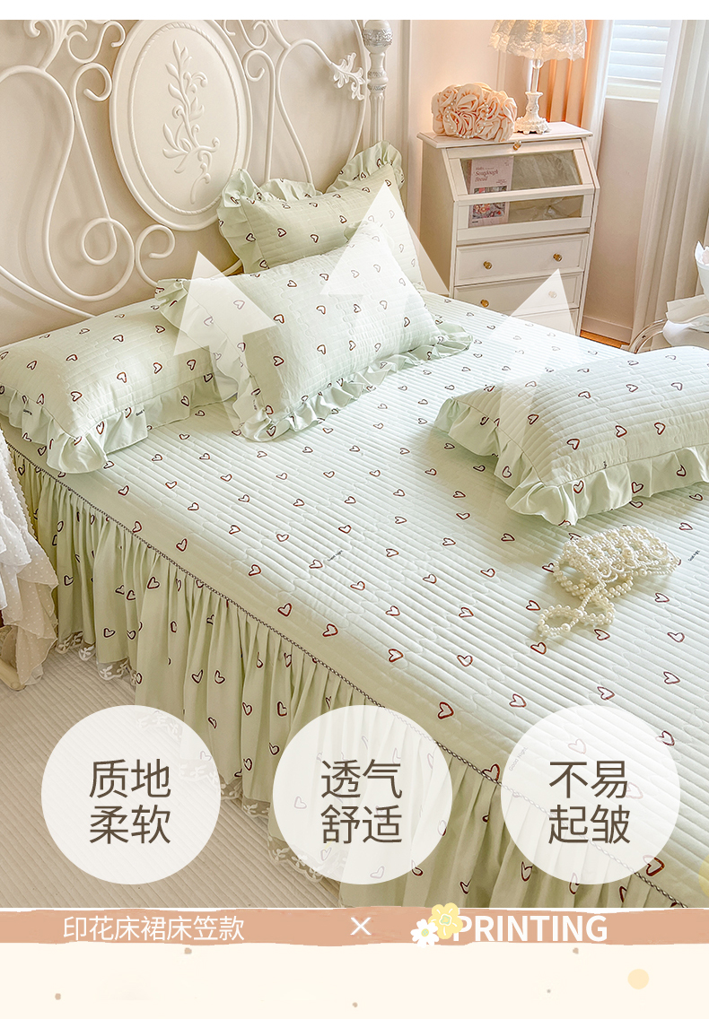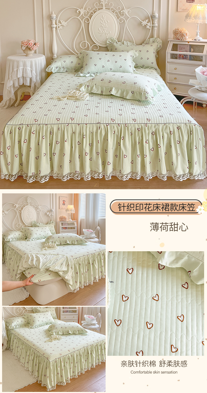 • 91家纺网 家纺一手货源 找家纺 网红馆2025新款针织印花单床裙 薄荷甜心