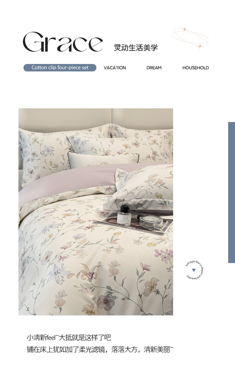 (总)洺兰家居 2026年新疆长绒棉100支秋冬款轻磨毛加厚保暖工艺款四件套床上用品,路易斯-米,千屿-曼卡粉,一见倾心-米,羽纱-卡其,织梦-粉,栀子花开-绿