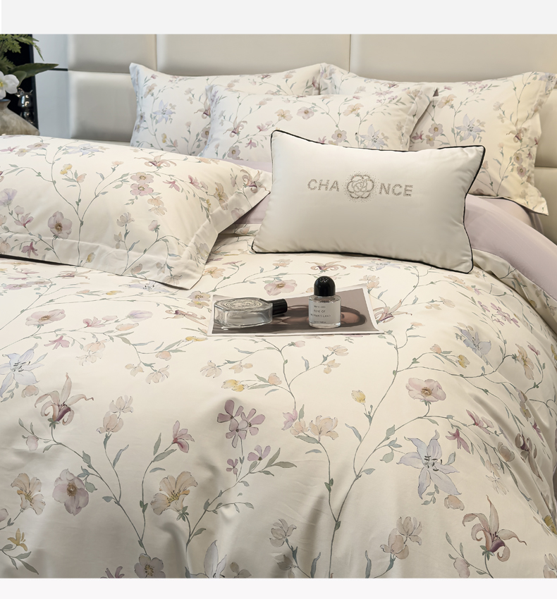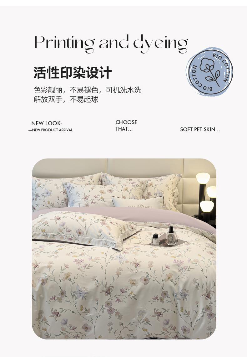 (总)洺兰家居 2026年新疆长绒棉100支天丝棉高端工艺款床单床笠四件套床上用品,淡若清香,陌上花开,羽墨